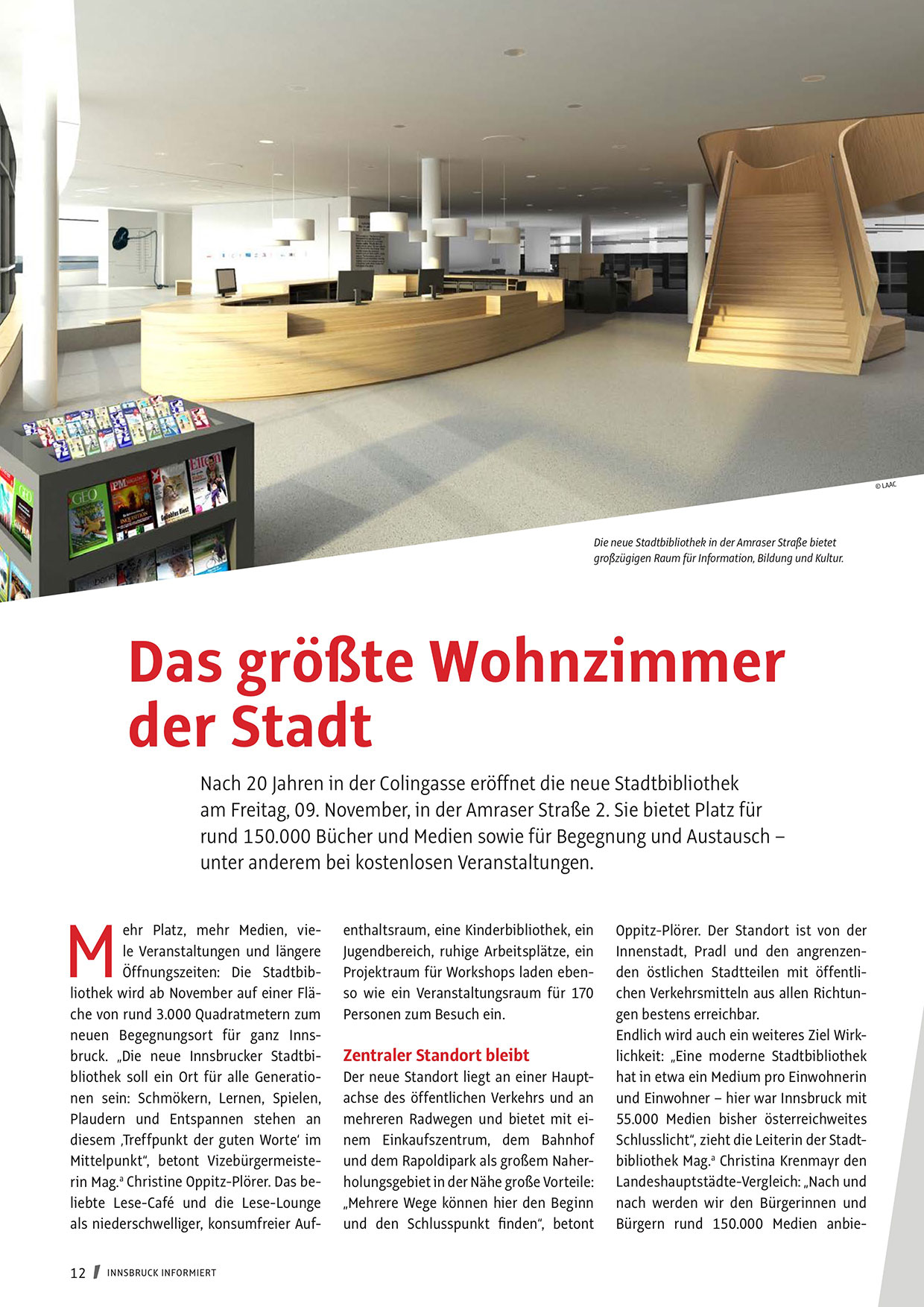 neuen Begegnungsort für ganz Innsbruck. „Die neue Innsbrucker Stadtbibliothek soll ein Ort für alle Generationen sein: Schmökern, Lernen, Spielen,