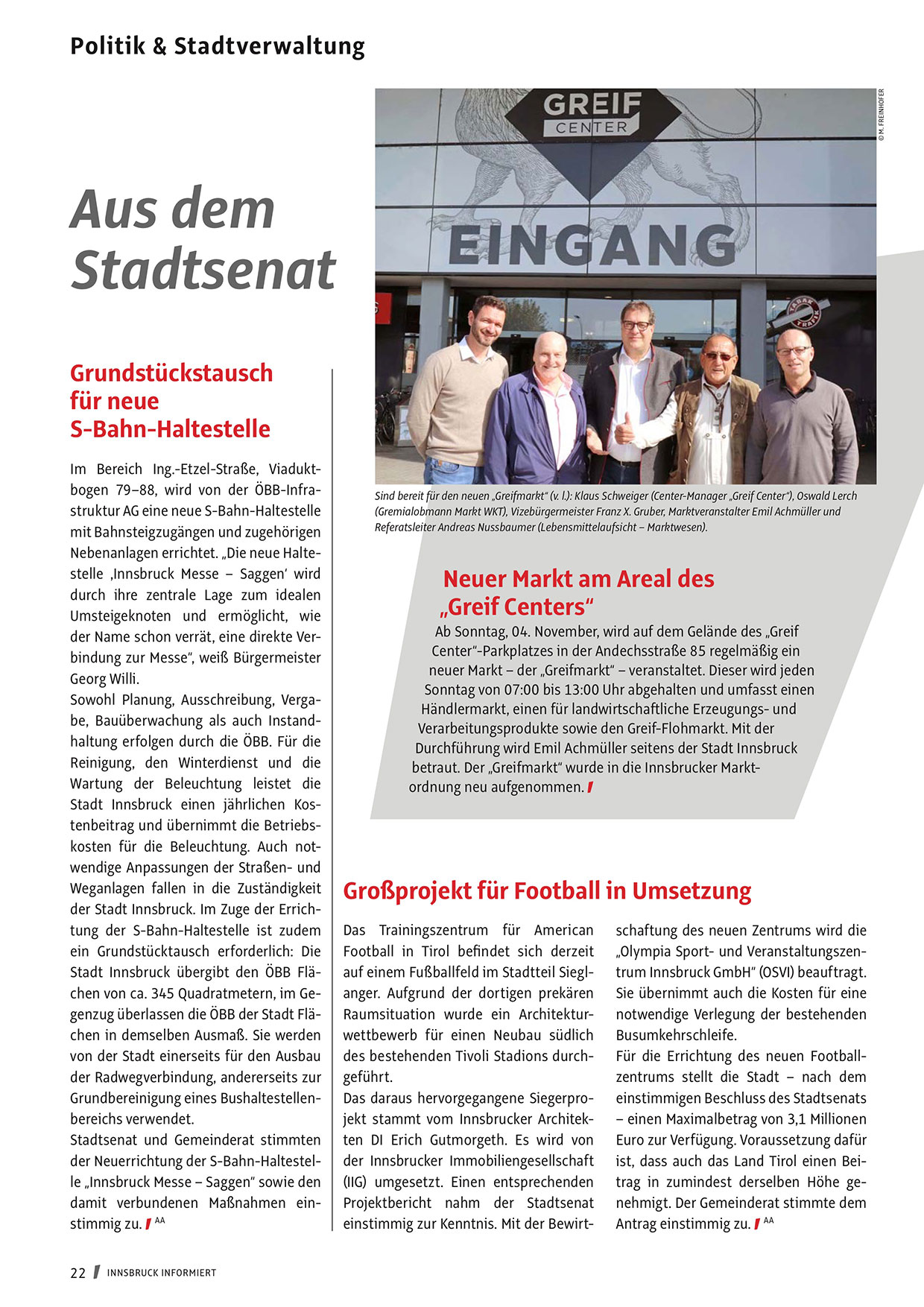 betraut. Der „Greifmarkt“ wurde in die Innsbrucker Markt
