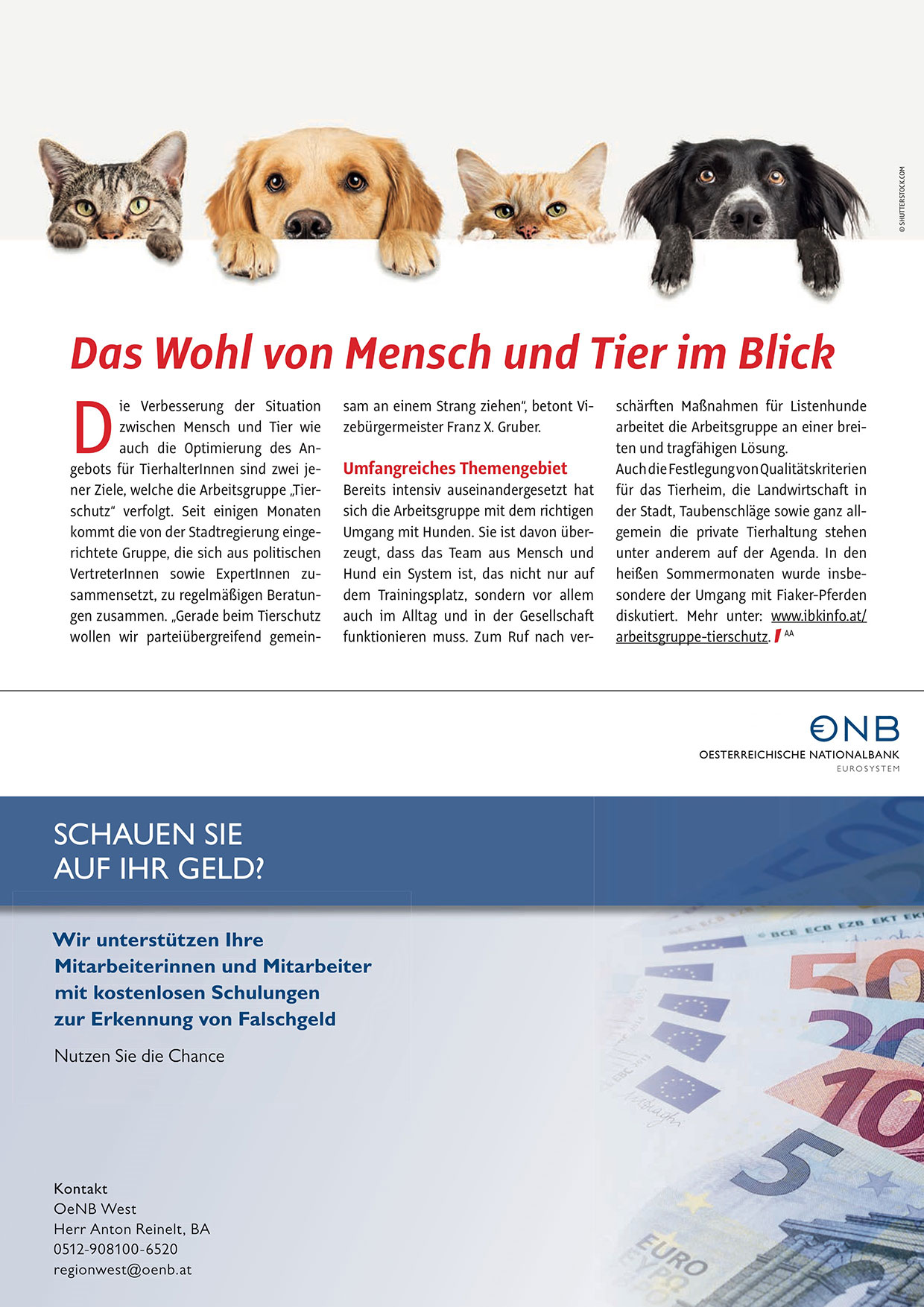 auch die Optimierung des Angebots für TierhalterInnen sind zwei jener Ziele, welche die Arbeitsgruppe „Tierschutz“ verfolgt. Seit einigen Monaten