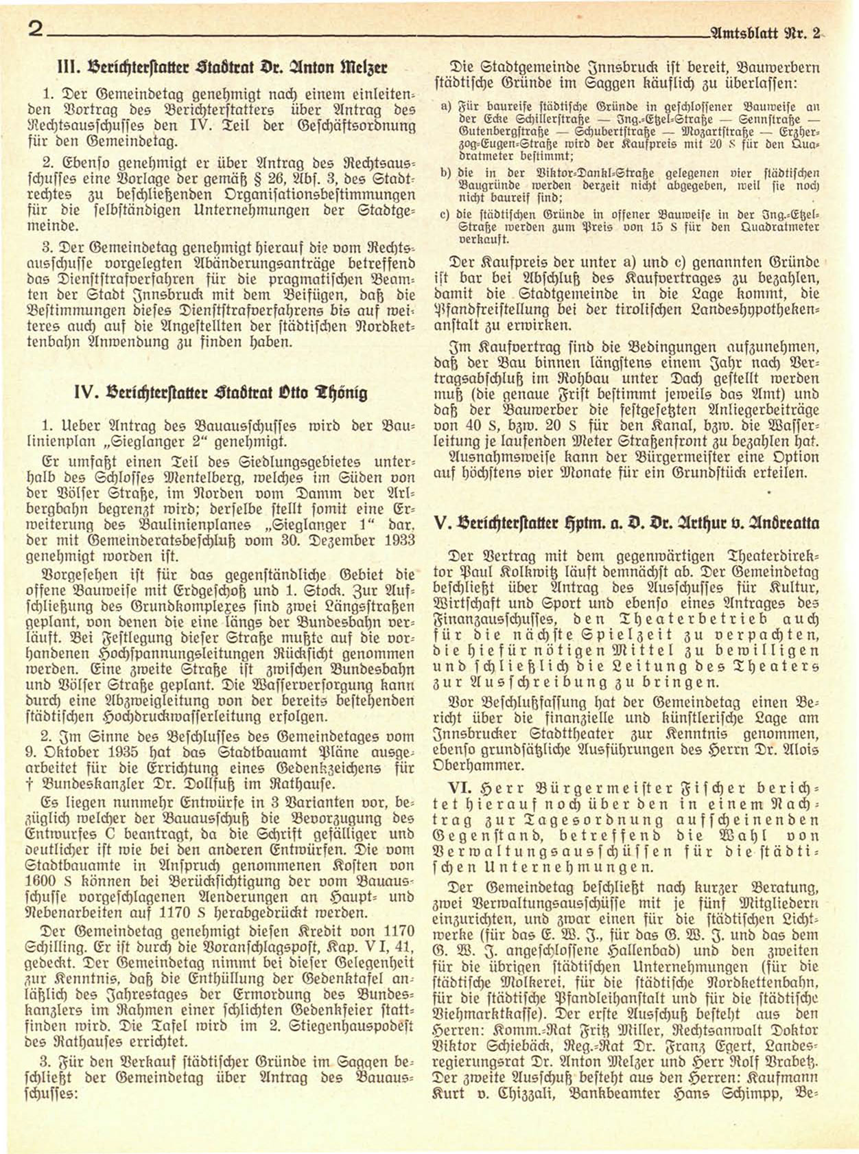 der mit Gemeinderatsbeschluß vom 30. Dezember 1933