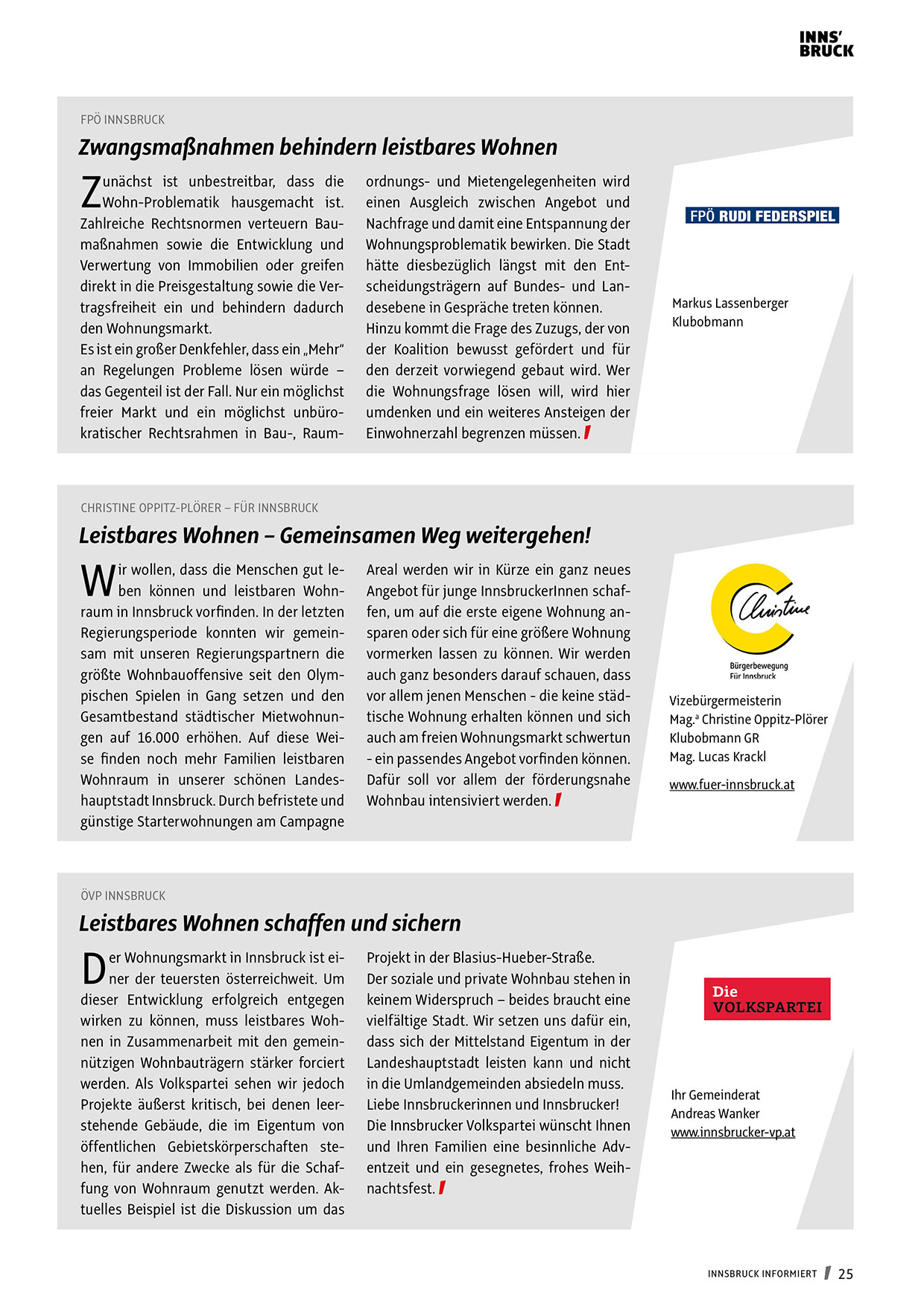 ir wollen, dass die Menschen gut leben können und leistbaren Wohnraum in Innsbruck vorfinden. In der letzten