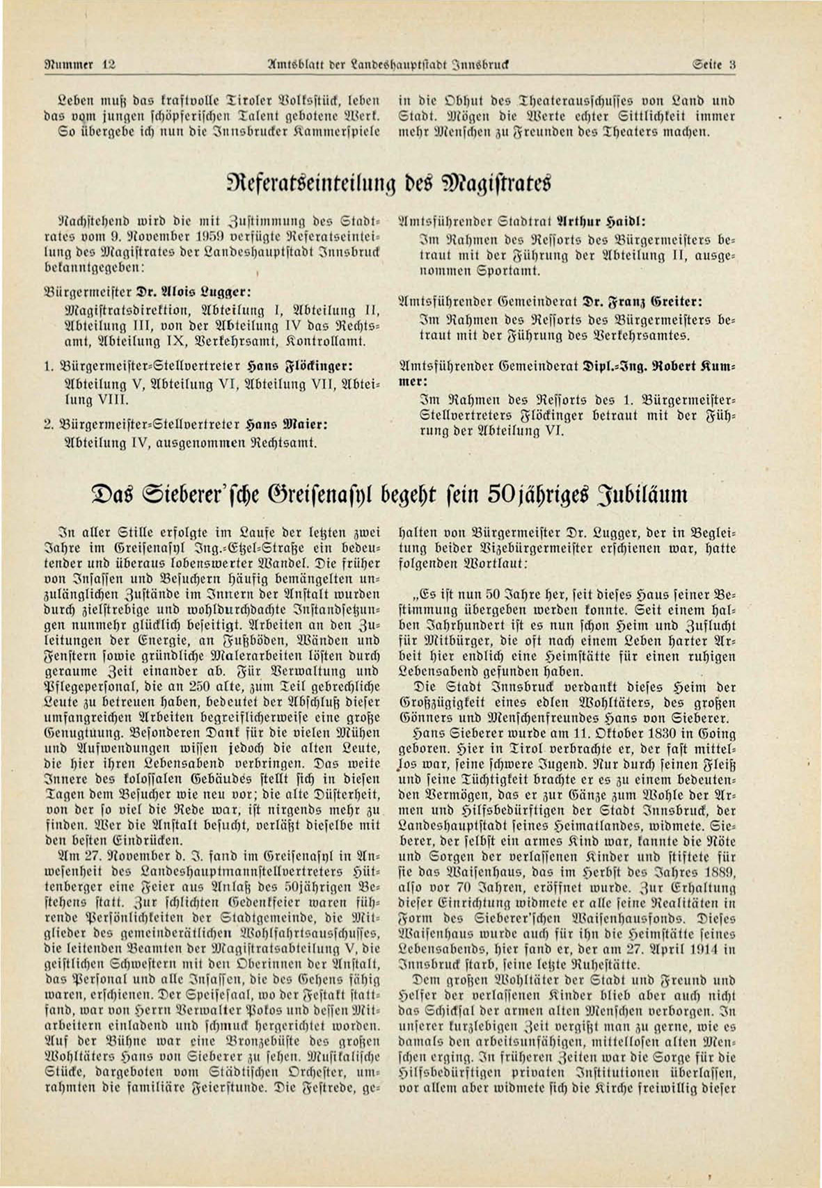 und seine Tüchtigkeit brachte er es zu einem bedeutenden Vermögen, das er zur Gänze zum Wohle der Armen und Hilfsbedürftigen der Stadt Innsbruck, der