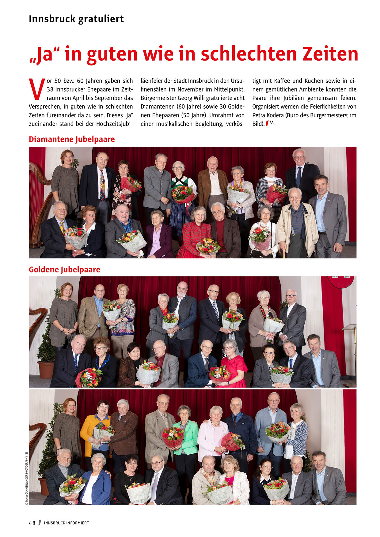 Diamantenen (60 Jahre) sowie 30 Goldenen Ehepaaren (50 Jahre). Umrahmt von
