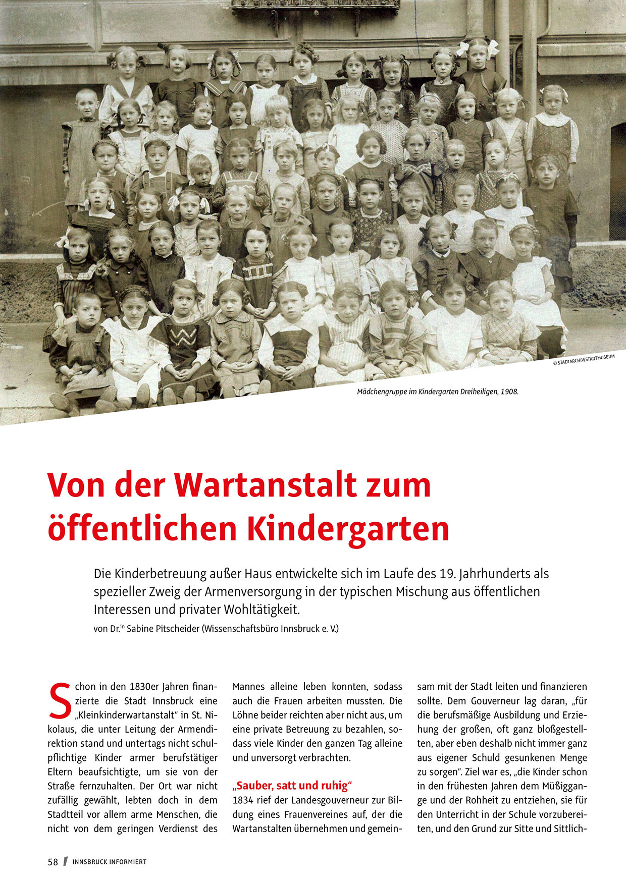 „Kleinkinderwartanstalt“ in St. Nikolaus, die unter Leitung der Armendirektion stand und untertags nicht schulpflichtige Kinder armer berufstätiger