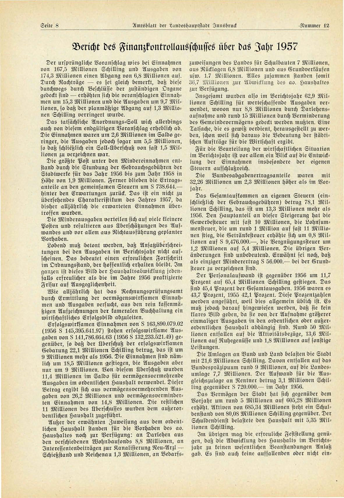 Bericht des Finanzkontrollausschusses über das Jahr 1957