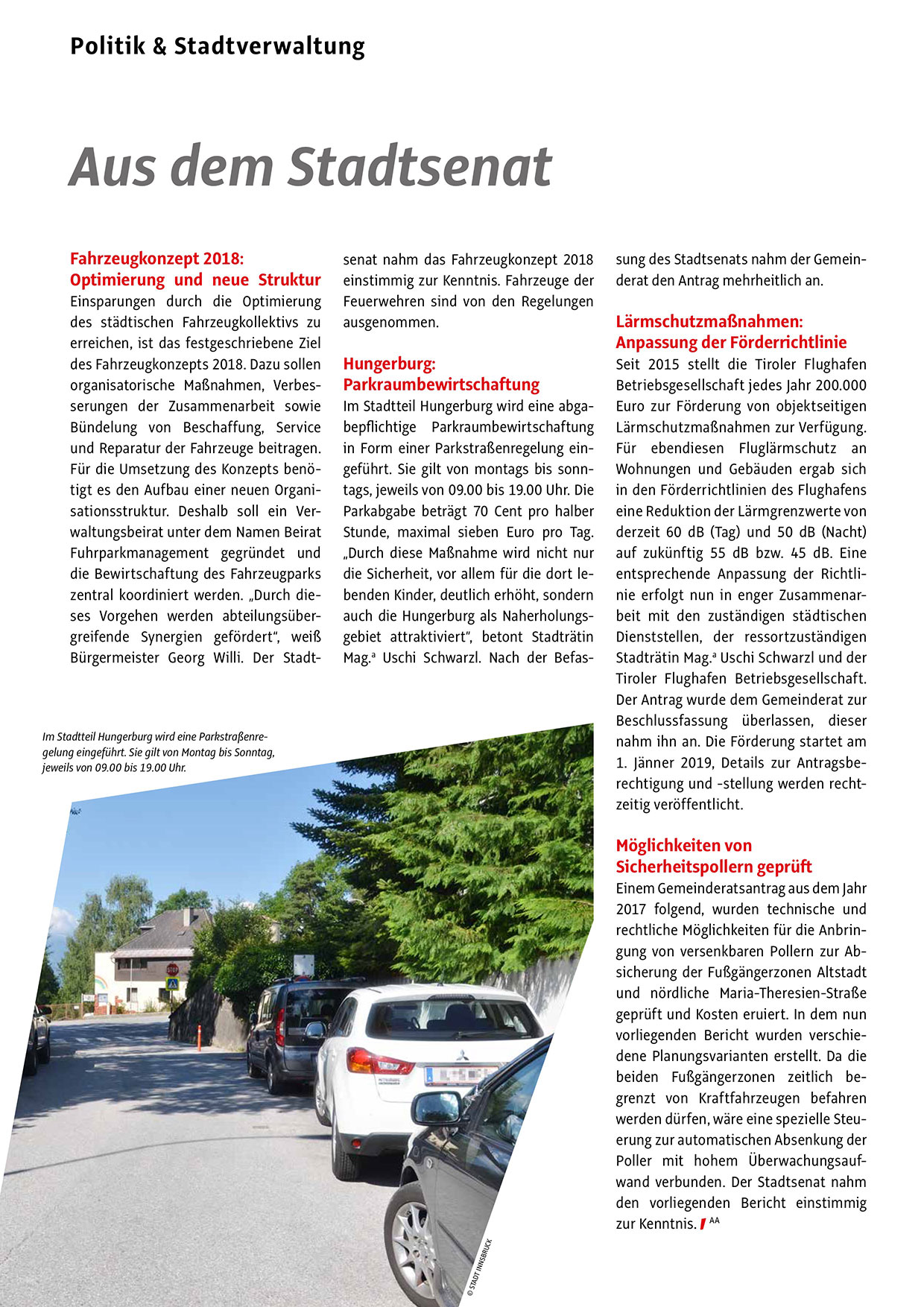 Im Stadtteil Hungerburg wird eine Parkstraßenregelung eingeführt. Sie gilt von Montag bis Sonntag,