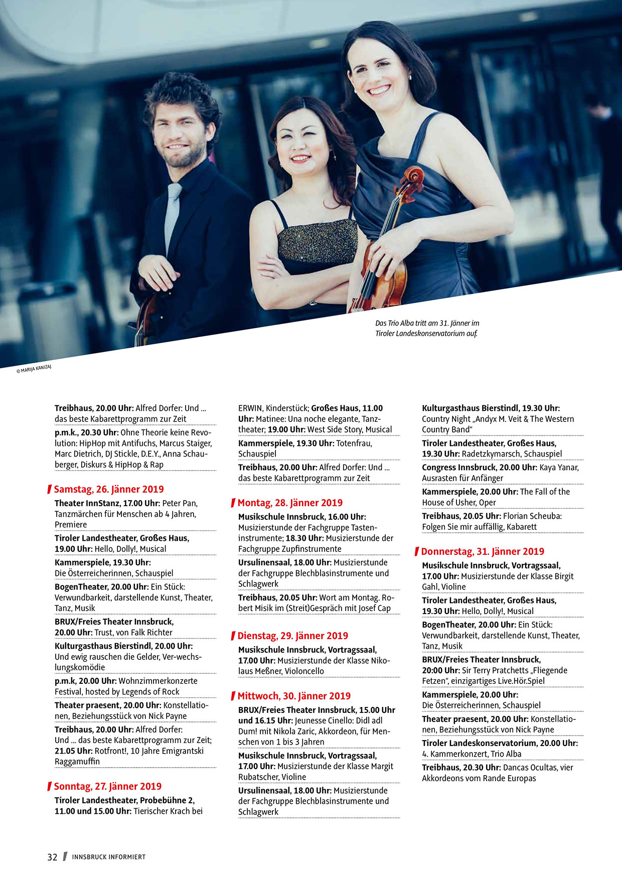 Das Trio Alba tritt am 31. Jänner im
