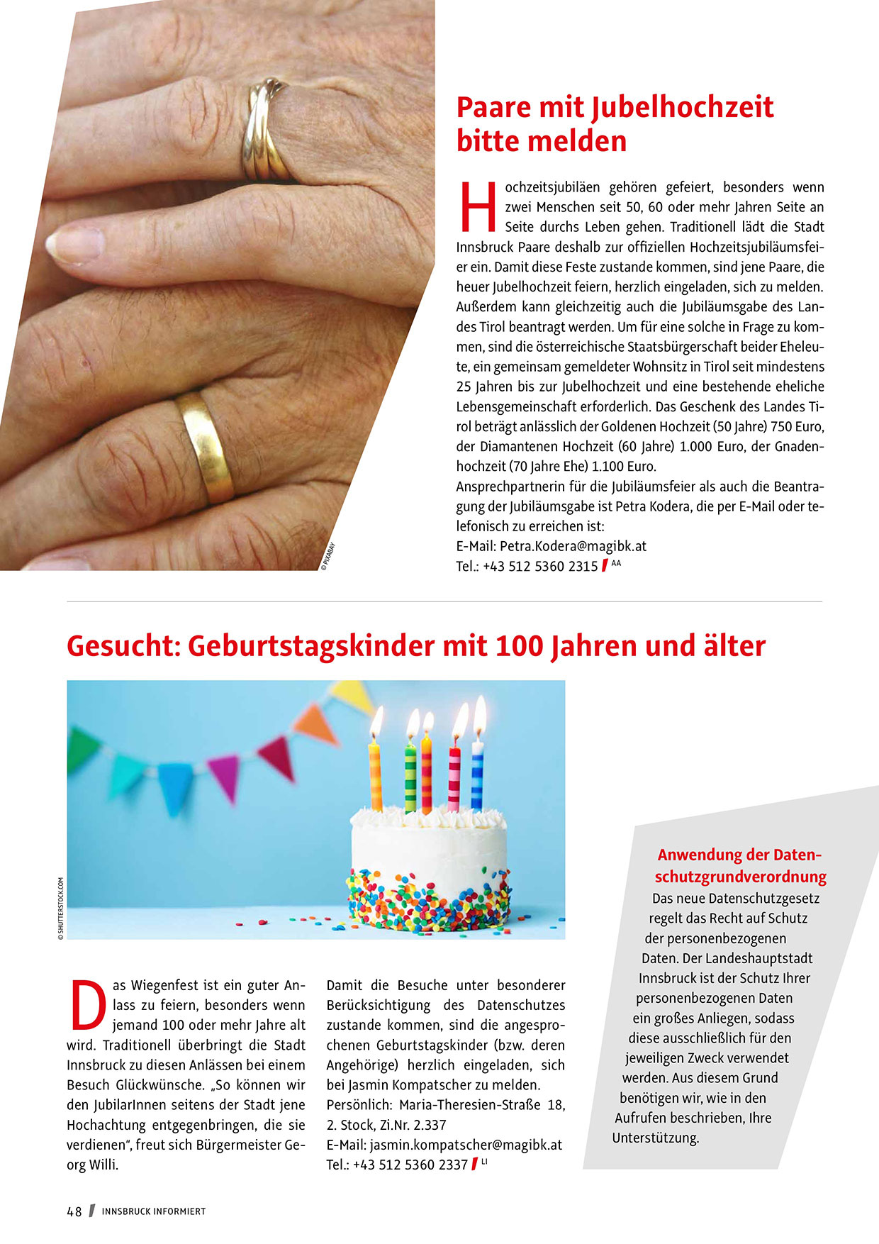 Innsbruck Paare deshalb zur offiziellen Hochzeitsjubiläumsfeier ein. Damit diese Feste zustande kommen, sind jene Paare, die