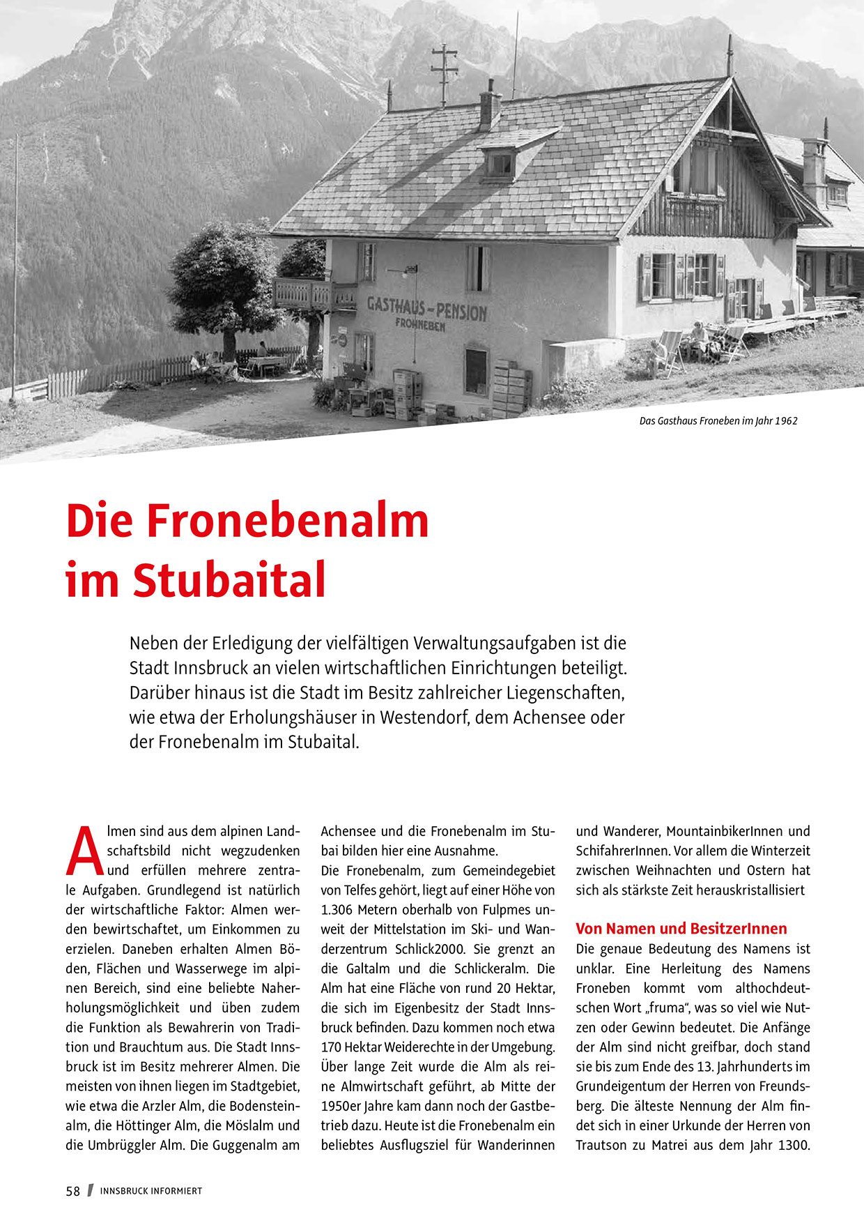 die Funktion als Bewahrerin von Tradition und Brauchtum aus. Die Stadt Innsbruck ist im Besitz mehrerer Almen. Die