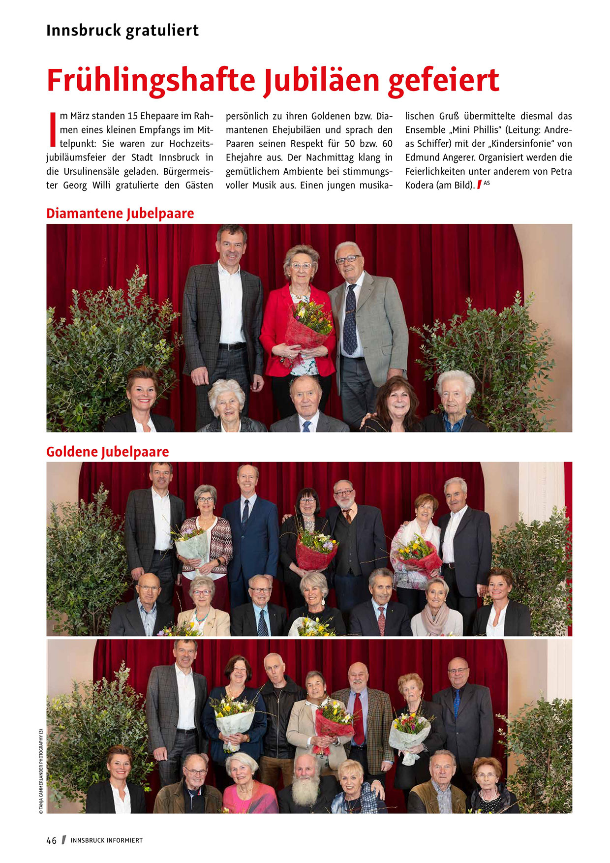 m März standen 15 Ehepaare im Rahmen eines kleinen Empfangs im Mittelpunkt: Sie waren zur Hochzeitsjubiläumsfeier der Stadt Innsbruck in
