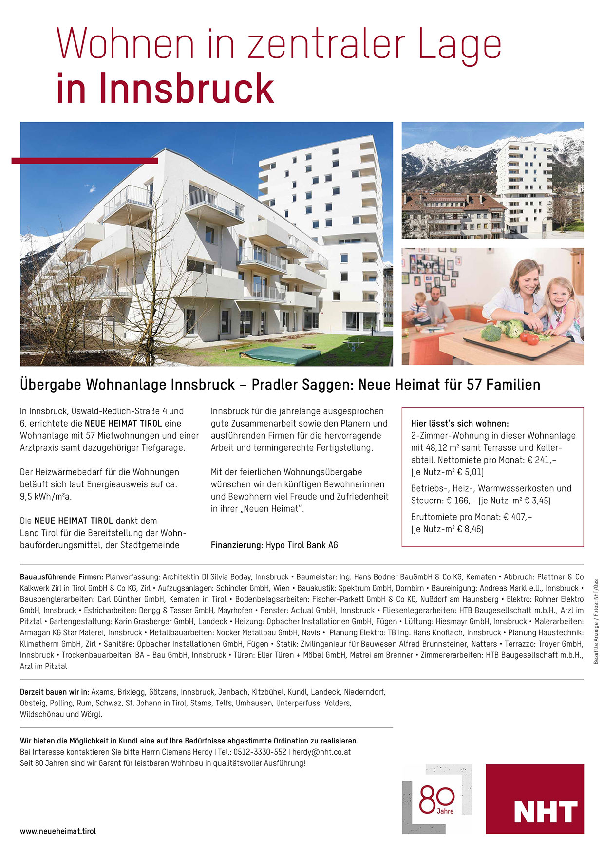Bei Interesse kontaktieren Sie bitte Herrn Clemens Herdy | Tel.: 0512-3330-552 | herdy@nht.co.at