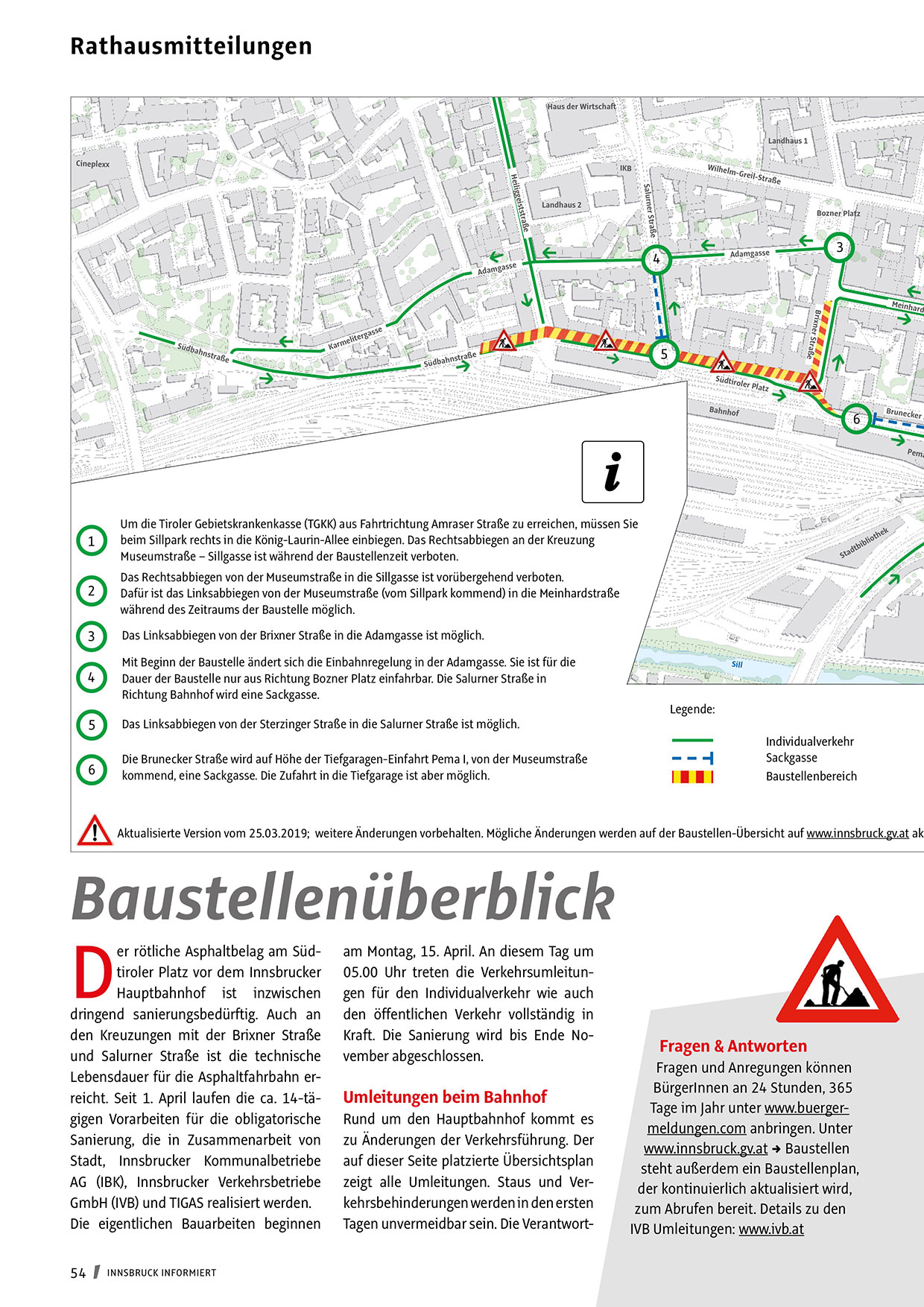 Aktualisierte Version vom 25.03.2019; weitere Änderungen vorbehalten. Mögliche Änderungen werden auf der Baustellen-Übersicht auf www.innsbruck.gv.at akt