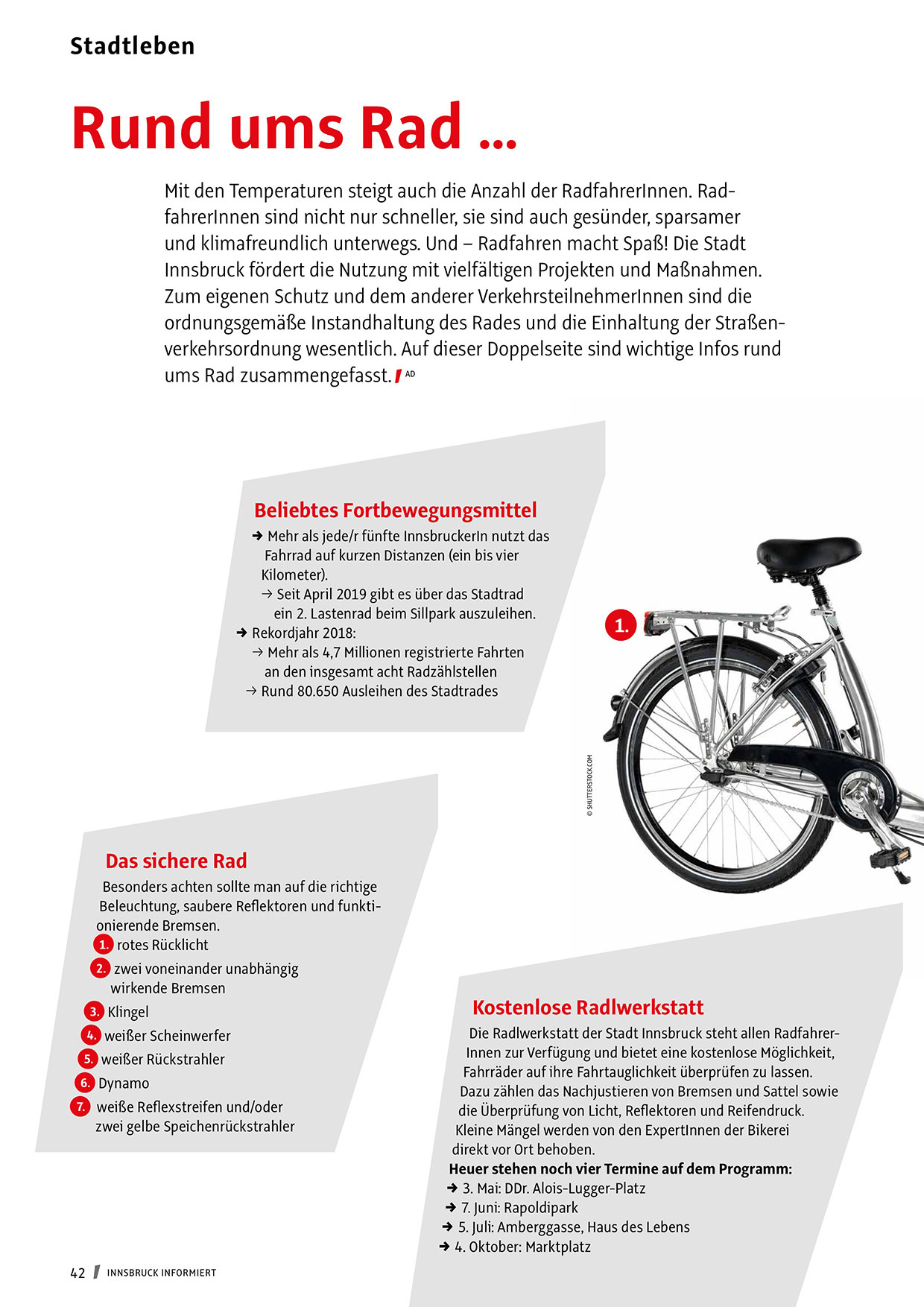 ordnungsgemäße Instandhaltung des Rades und die Einhaltung der Straßenverkehrsordnung wesentlich. Auf dieser Doppelseite sind wichtige Infos rund