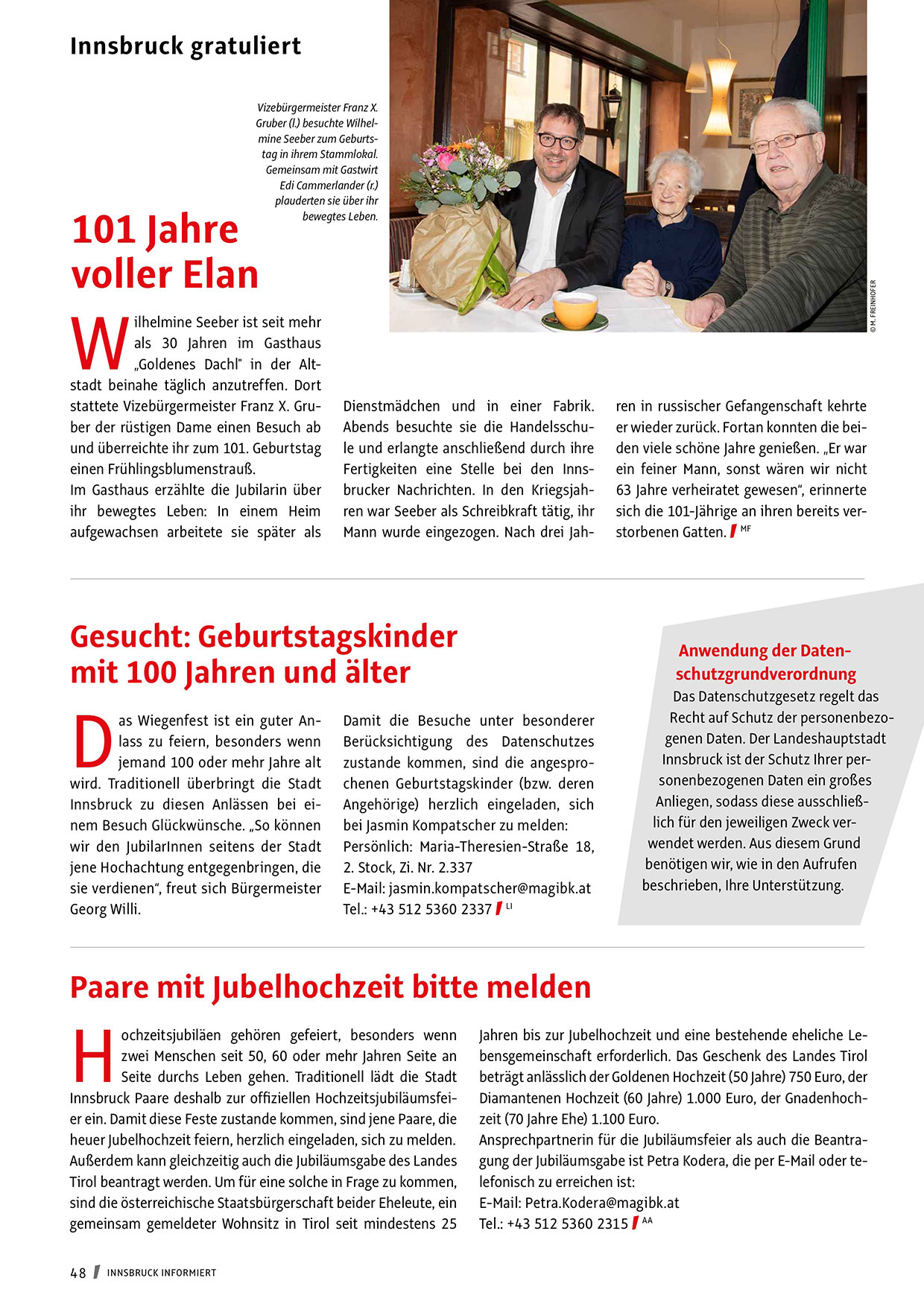 Innsbruck zu diesen Anlässen bei einem Besuch Glückwünsche. „So können