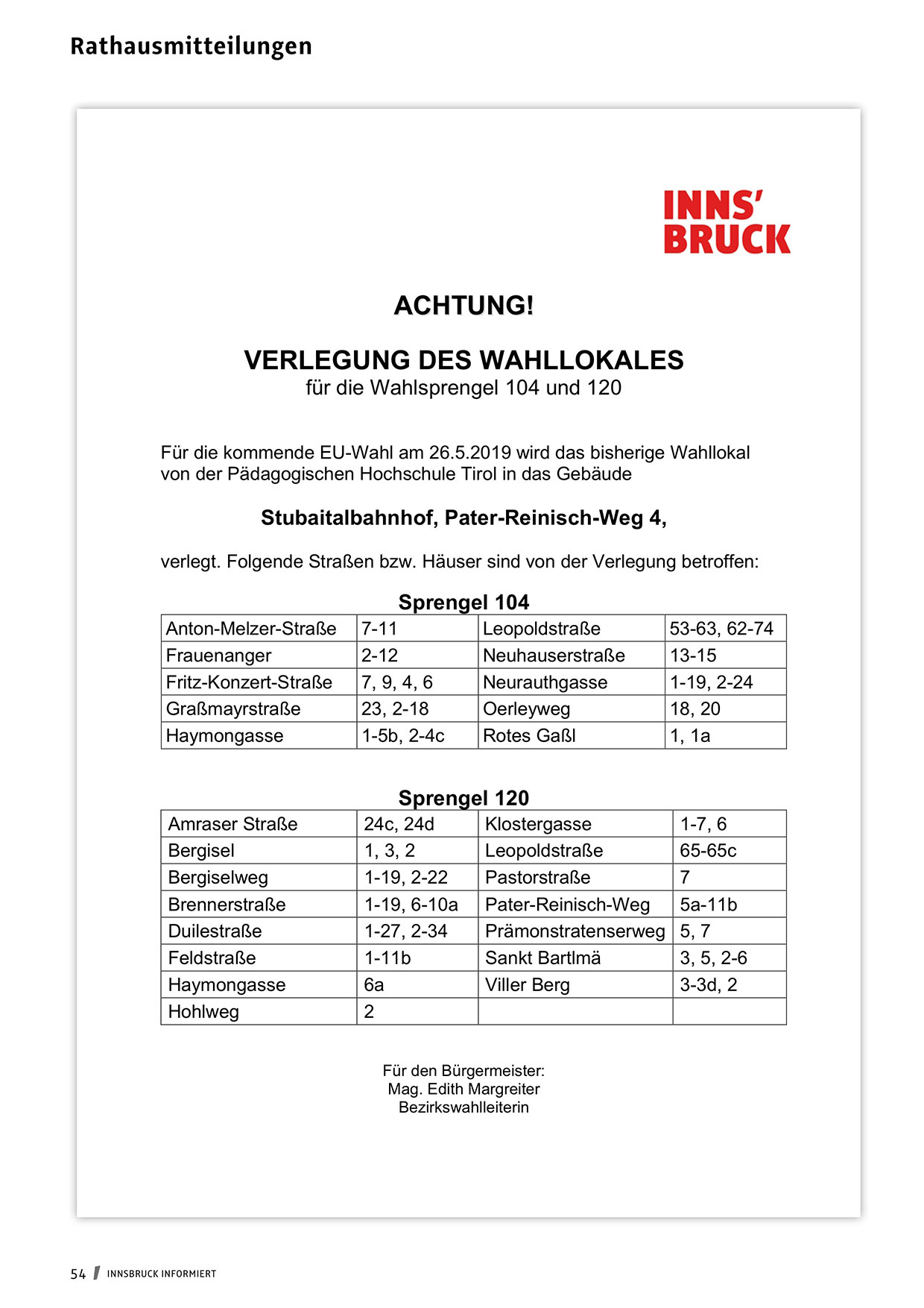 verlegt. Folgende Straßen bzw. Häuser sind von der Verlegung betroffen: