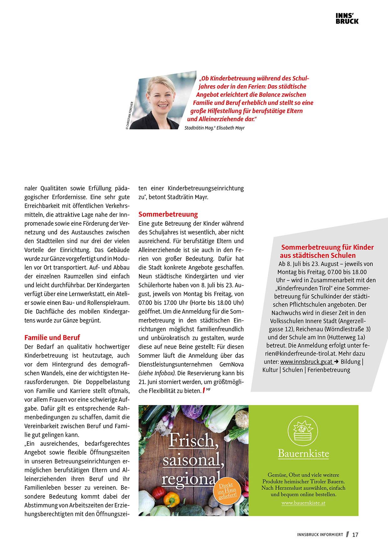 „Kinderfreunden Tirol“ eine Sommerbetreuung für Schulkinder der städtischen Pflichtschulen angeboten. Der