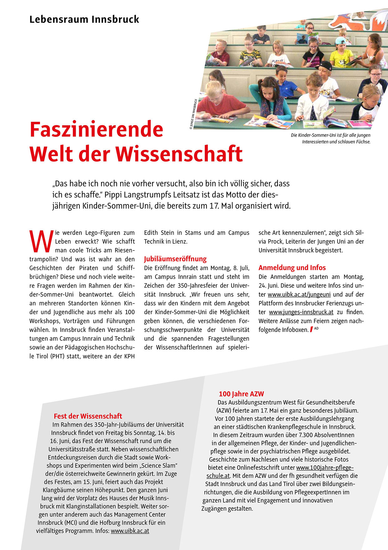 24. Juni. Diese und weitere Infos sind unter www.uibk.ac.at/jungeuni und auf der