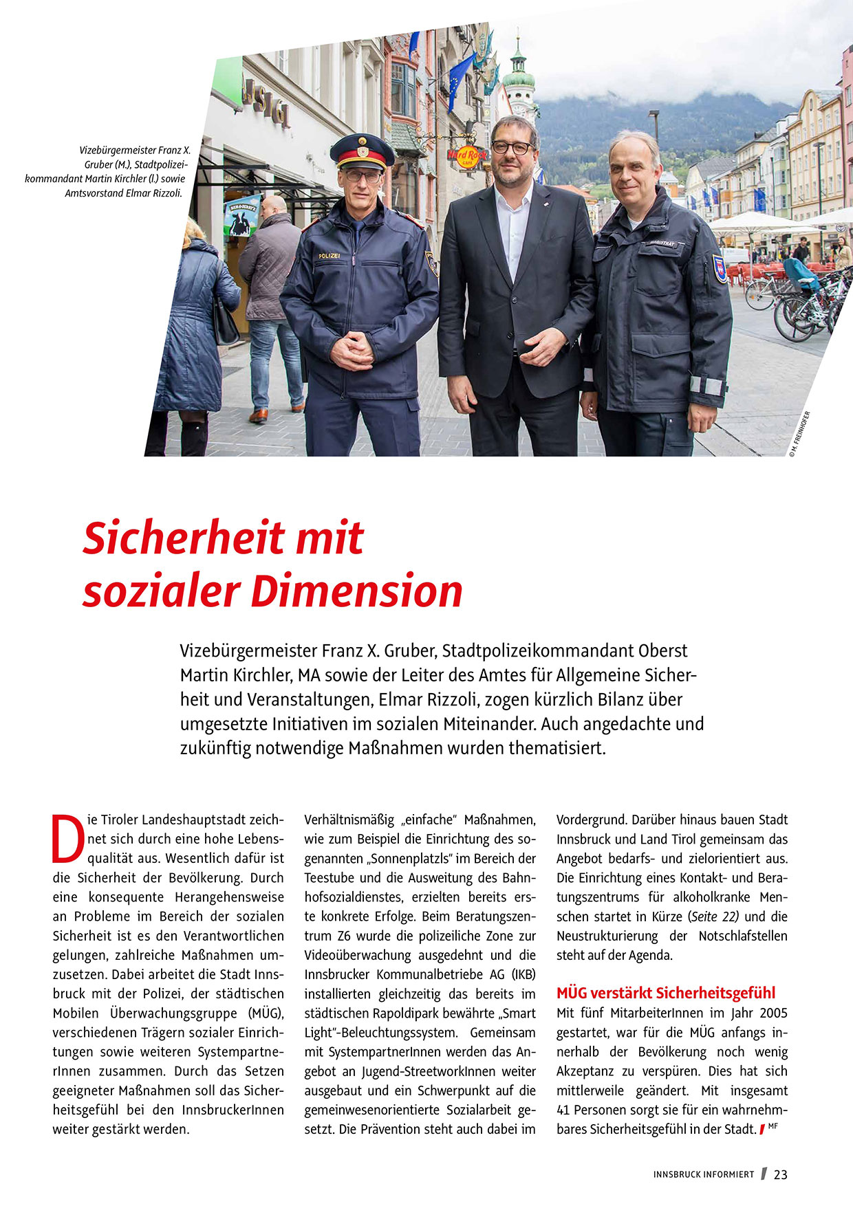 gelungen, zahlreiche Maßnahmen umzusetzen. Dabei arbeitet die Stadt Innsbruck mit der Polizei, der städtischen