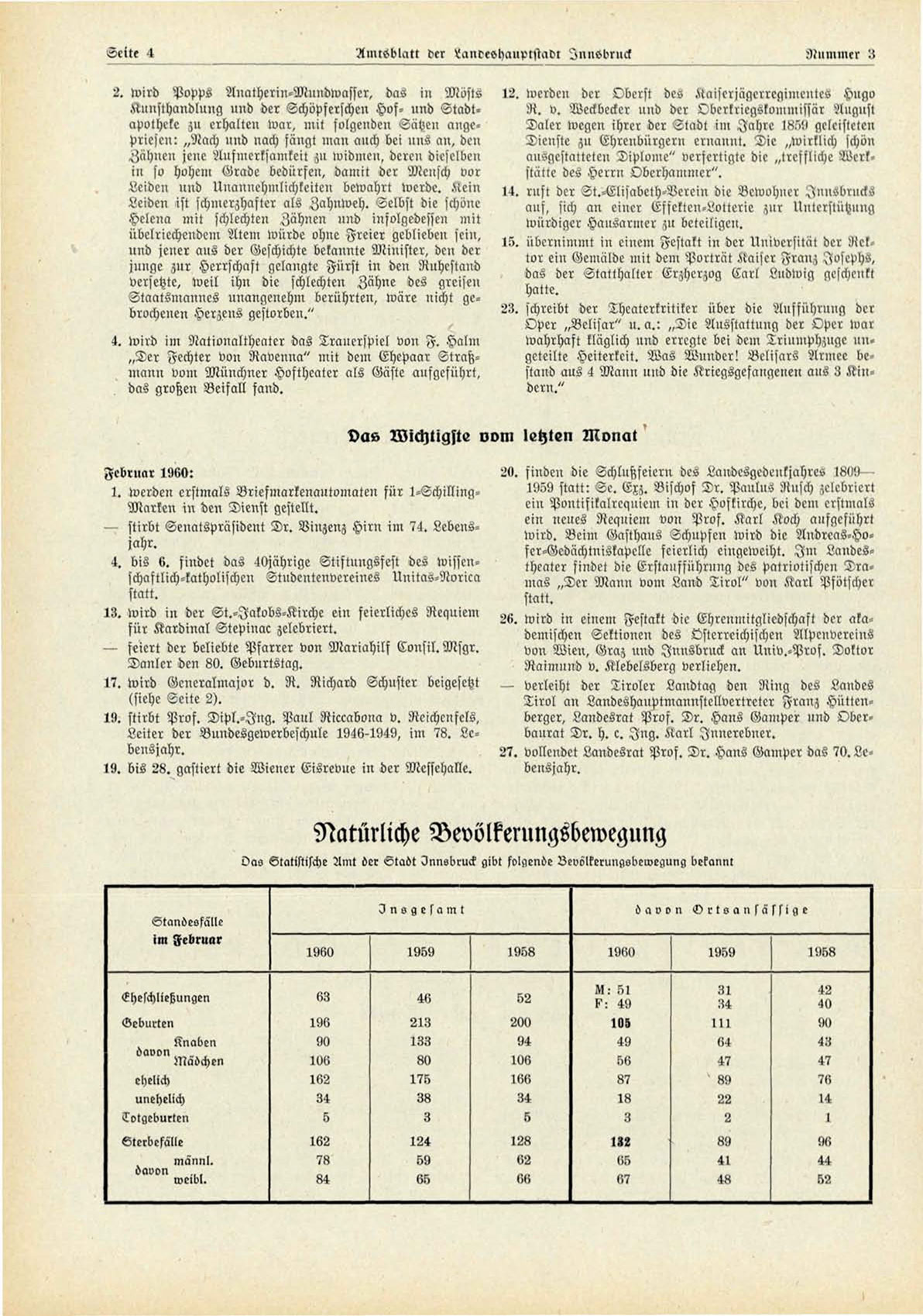 Oas Statistische Amt der Stadt Innsbruck gibt folgende Vevölkerungsbewegung bekannt