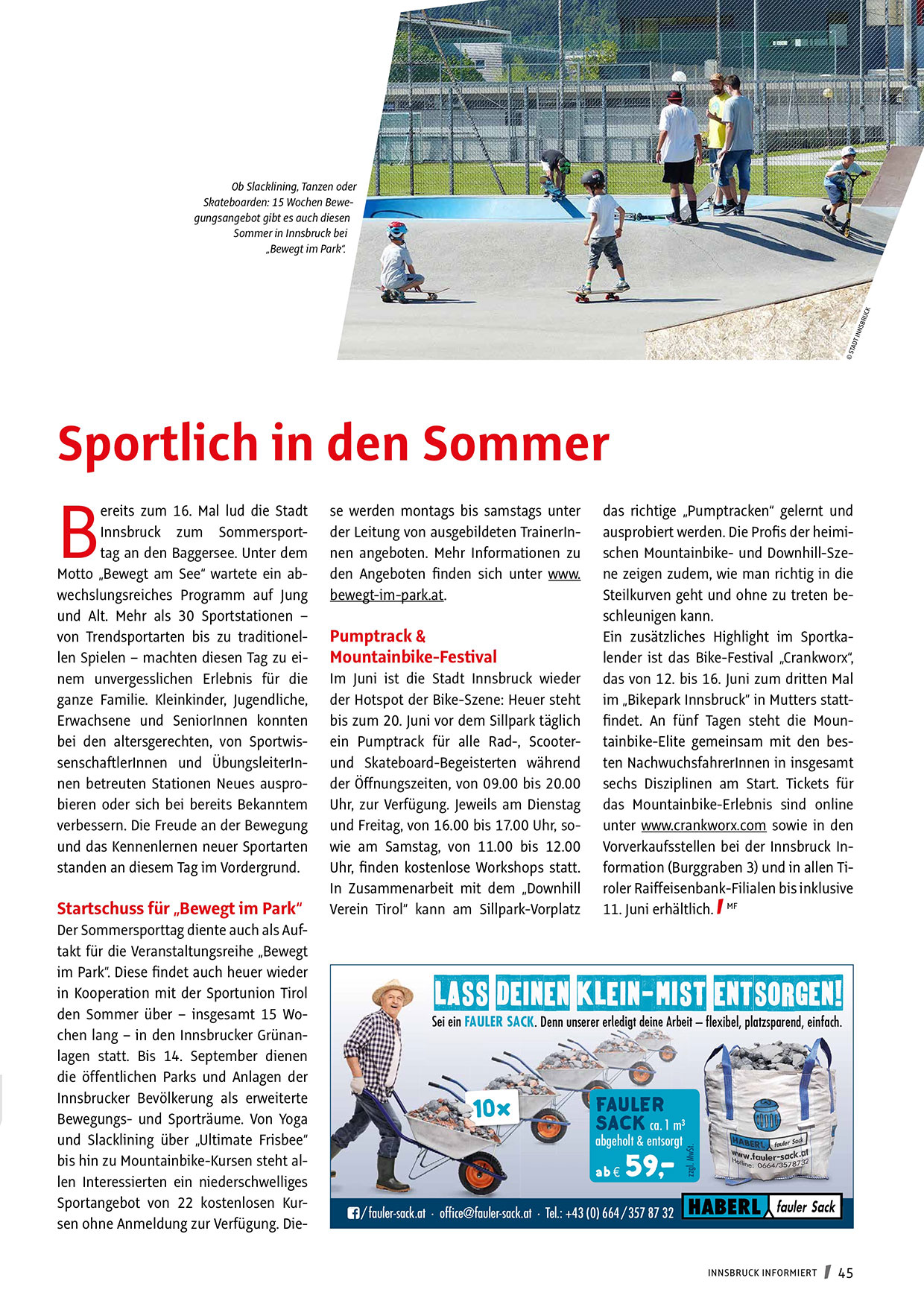 den Sommer über – insgesamt 15 Wochen lang – in den Innsbrucker Grünanlagen statt. Bis 14. September dienen