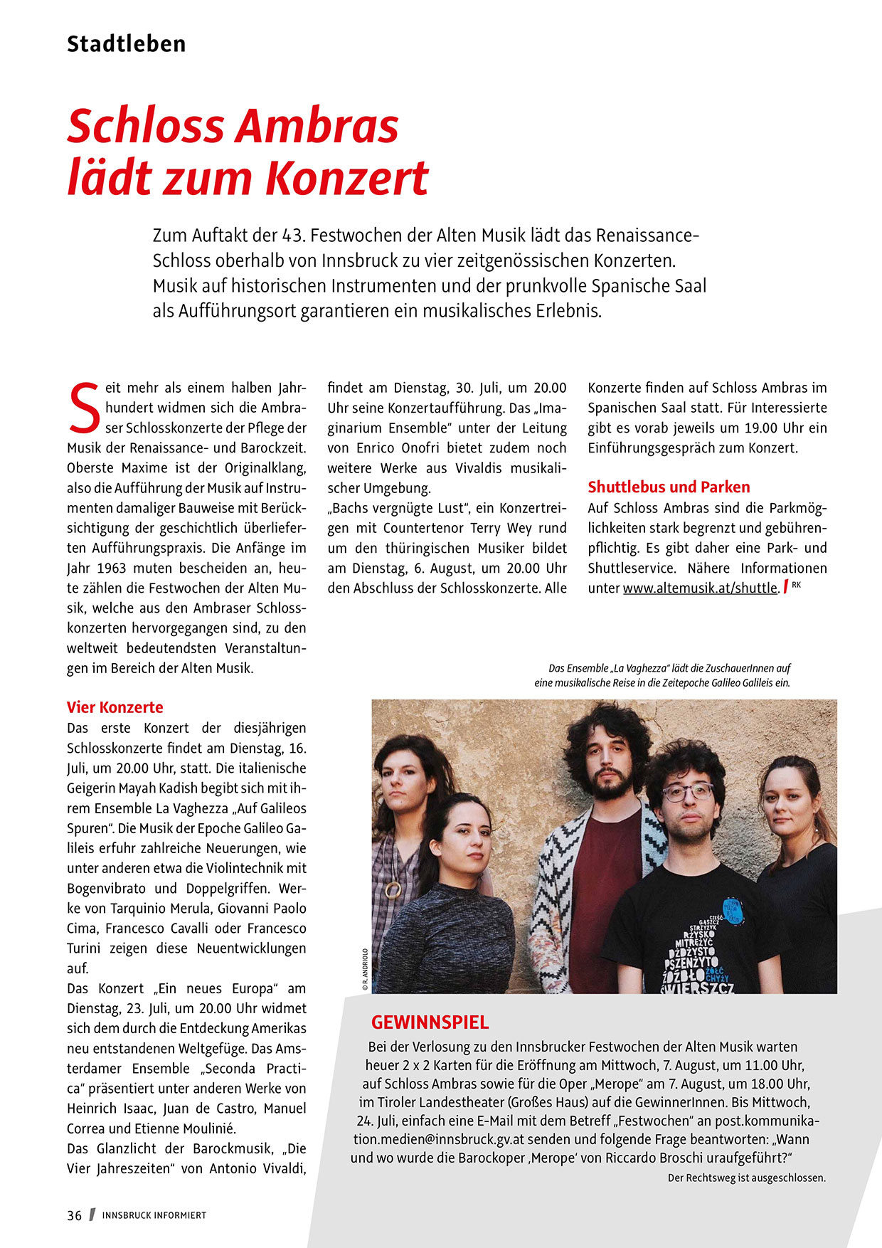 24. Juli, einfach eine E-Mail mit dem Betreff „Festwochen“ an post.kommunikation.medien@innsbruck.gv.at senden und folgende Frage beantworten: „Wann
