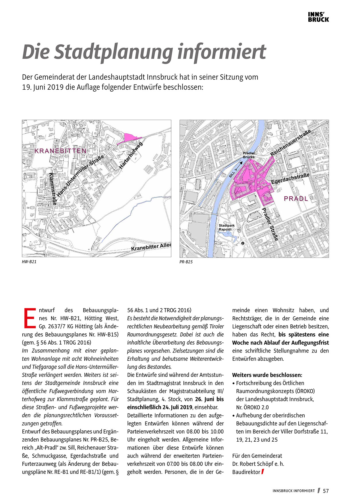 Die Entwürfe sind während der Amtsstunden im Stadtmagistrat Innsbruck in den