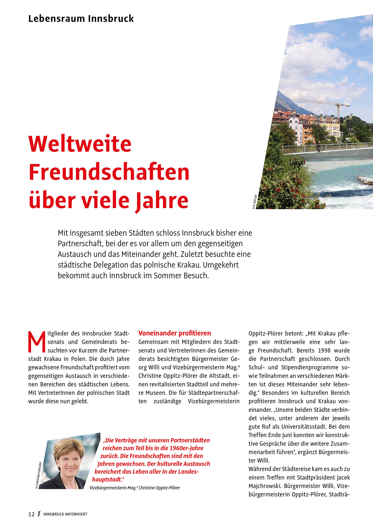 itglieder des Innsbrucker Stadtsenats und Gemeinderats besuchten vor Kurzem die Partnerstadt Krakau in Polen. Die durch Jahre