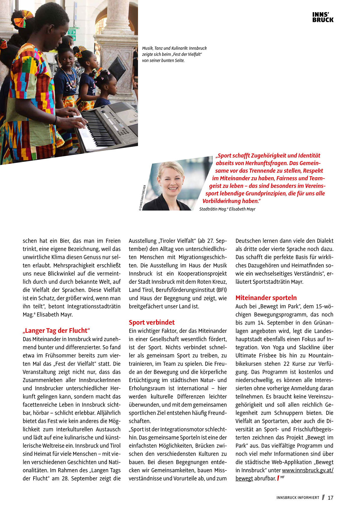 und Innsbrucker unterschiedlicher Herkunft gelingen kann, sondern macht das