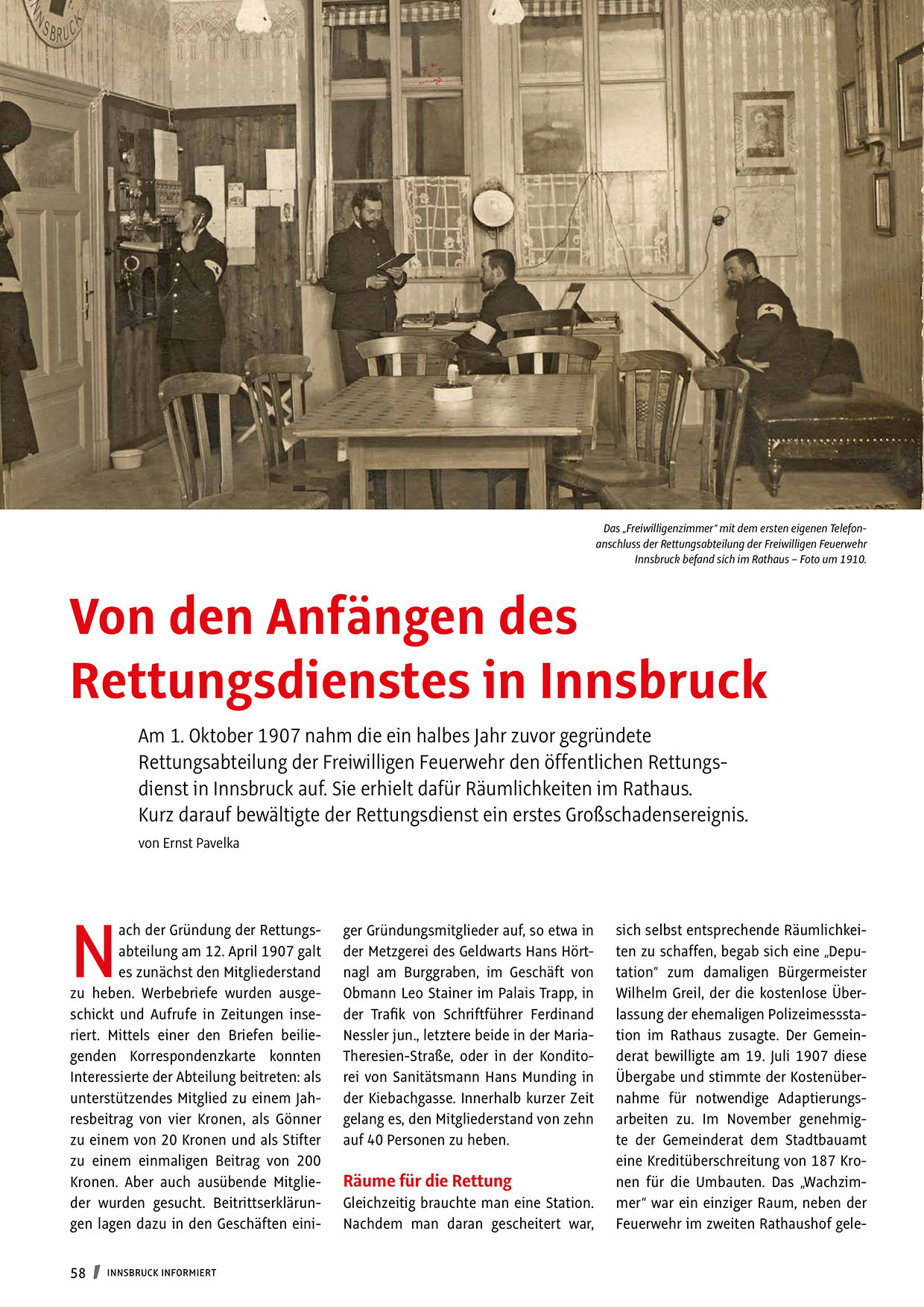 Rettungsabteilung der Freiwilligen Feuerwehr den öffentlichen Rettungsdienst in Innsbruck auf. Sie erhielt dafür Räumlichkeiten im Rathaus.