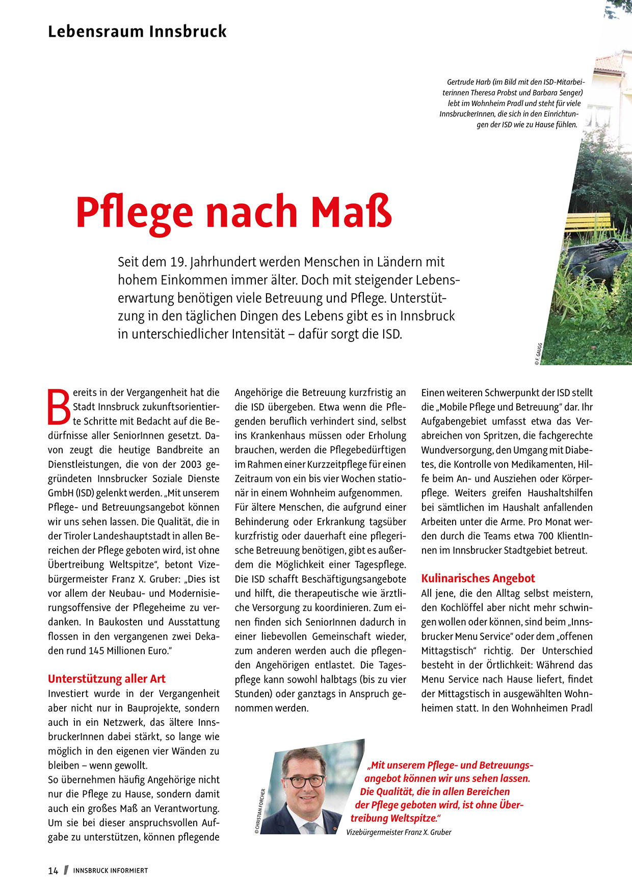 der Tiroler Landeshauptstadt in allen Bereichen der Pflege geboten wird, ist ohne