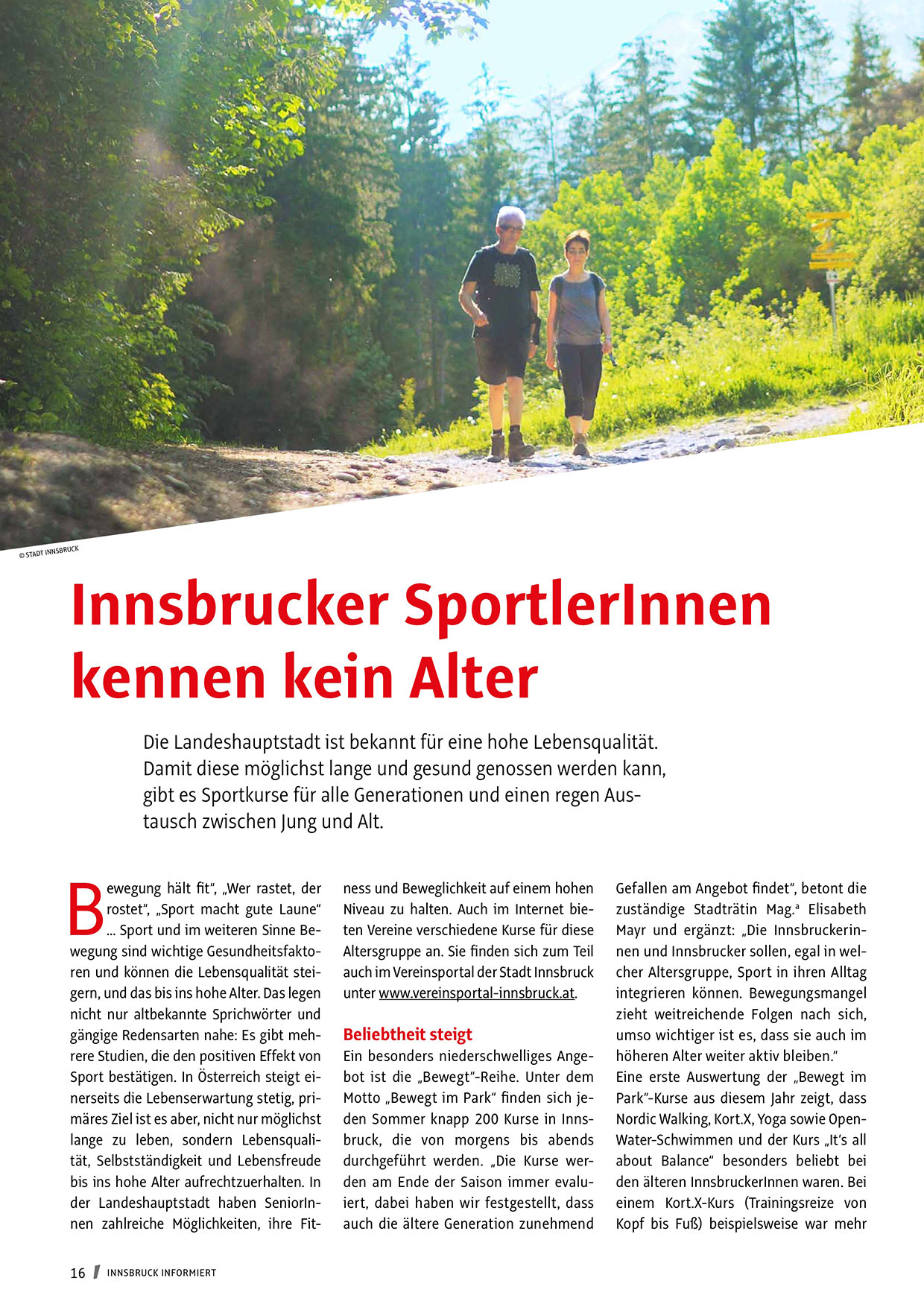 Mayr und ergänzt: „Die Innsbruckerinnen und Innsbrucker sollen, egal in welcher Altersgruppe, Sport in ihren Alltag