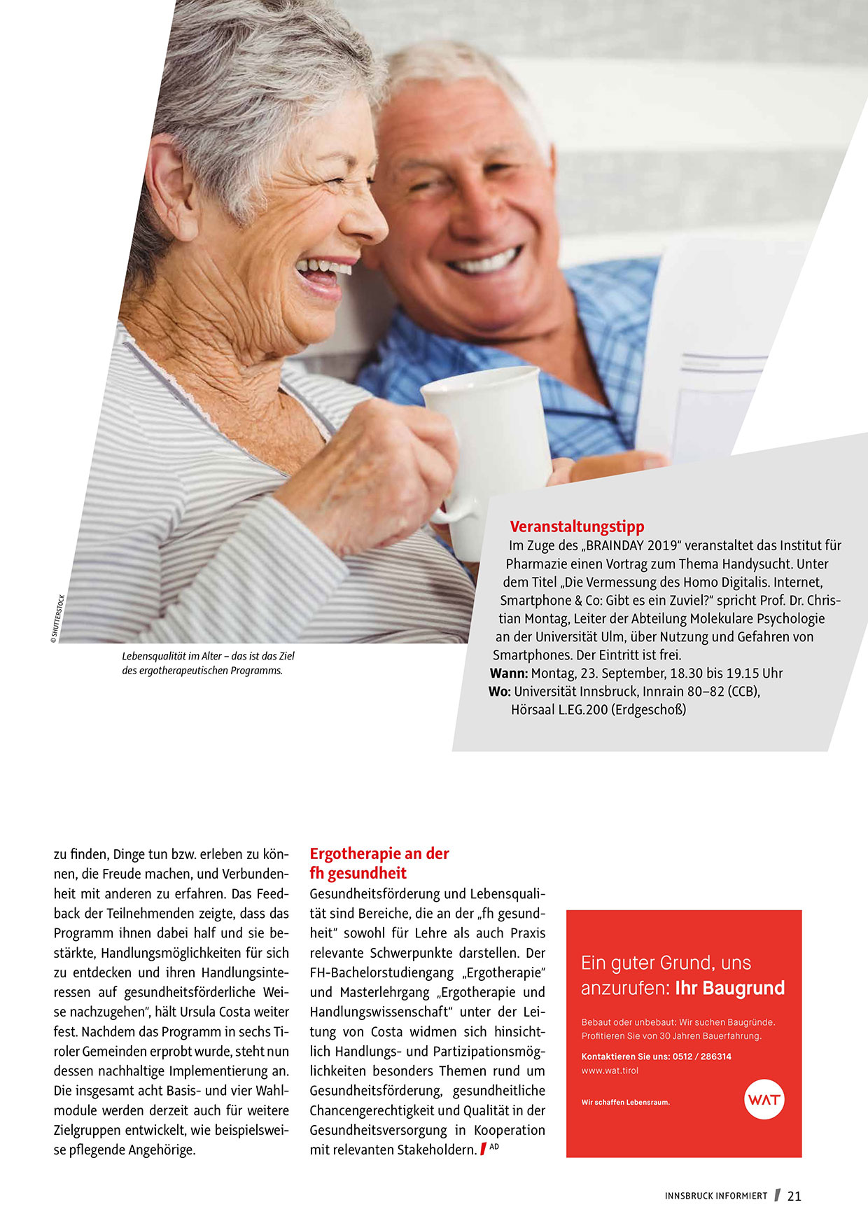 Gesundheitsförderung und Lebensqualität sind Bereiche, die an der „fh gesundheit“ sowohl für Lehre als auch Praxis