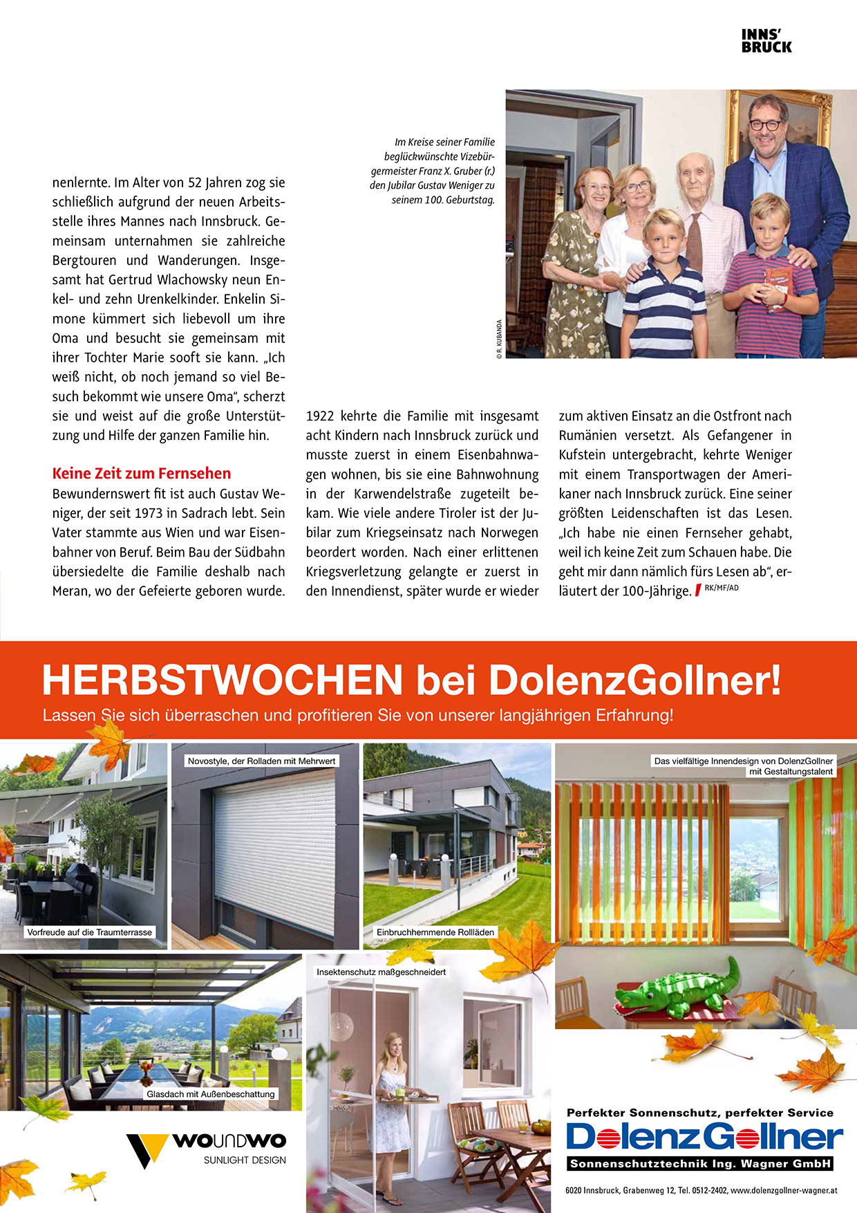 6020 Innsbruck, Grabenweg 12, Tel. 0512-2402, www.dolenzgollner-wagner.at