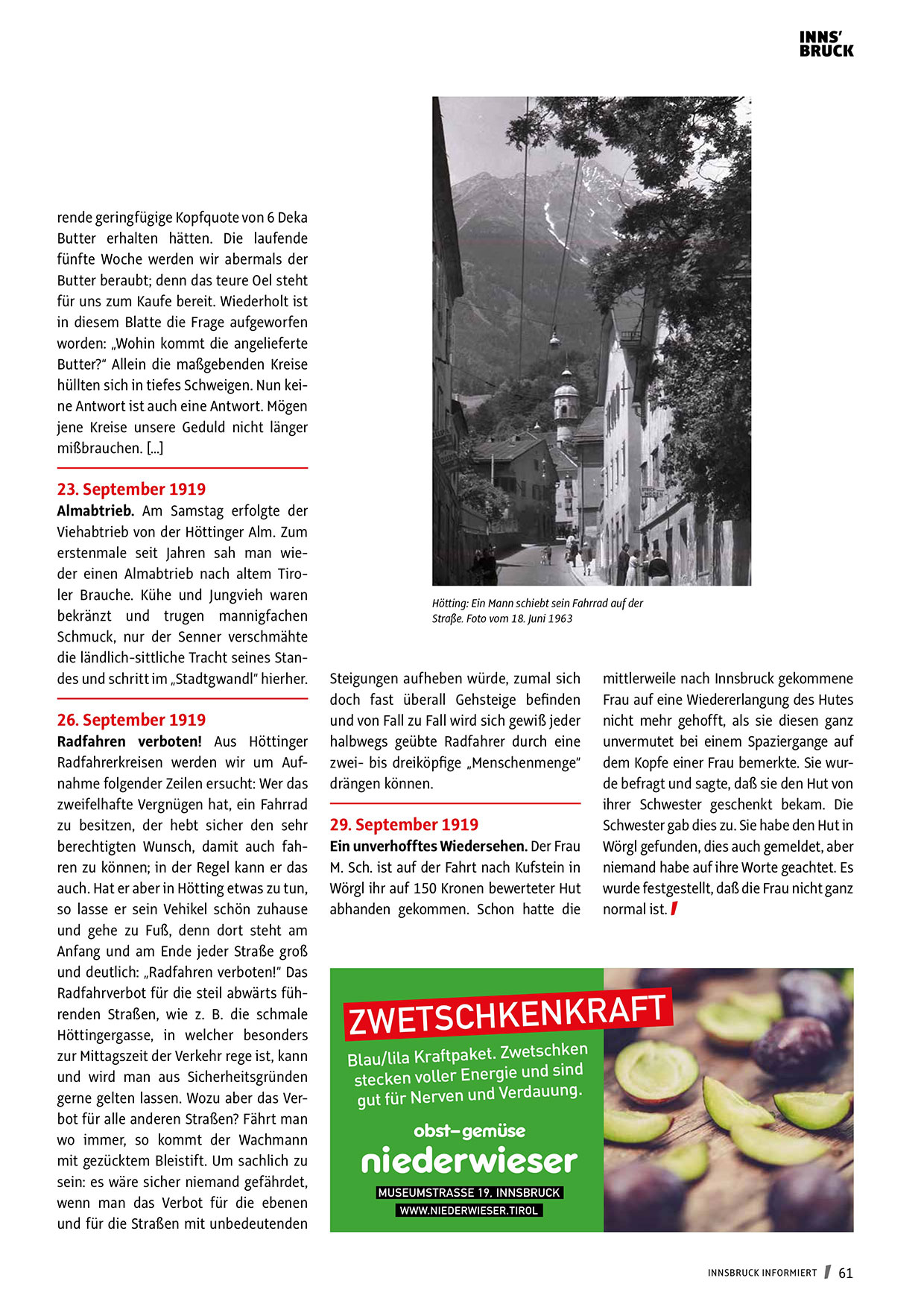 Hötting: Ein Mann schiebt sein Fahrrad auf der