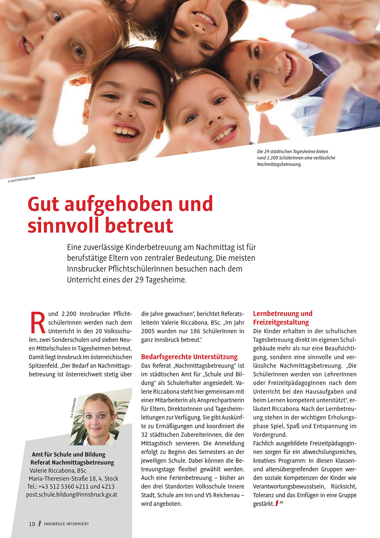 im städtischen Amt für „Schule und Bildung“ als Schulerhalter angesiedelt. Valerie Riccabona steht hier gemeinsam mit