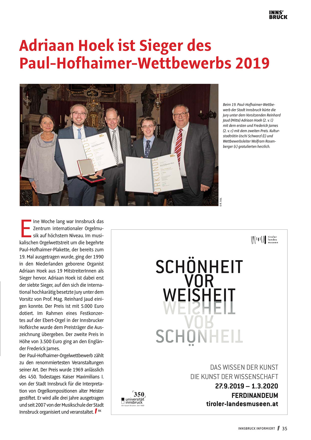 dotiert. Im Rahmen eines Festkonzertes auf der Ebert-Orgel in der Innsbrucker