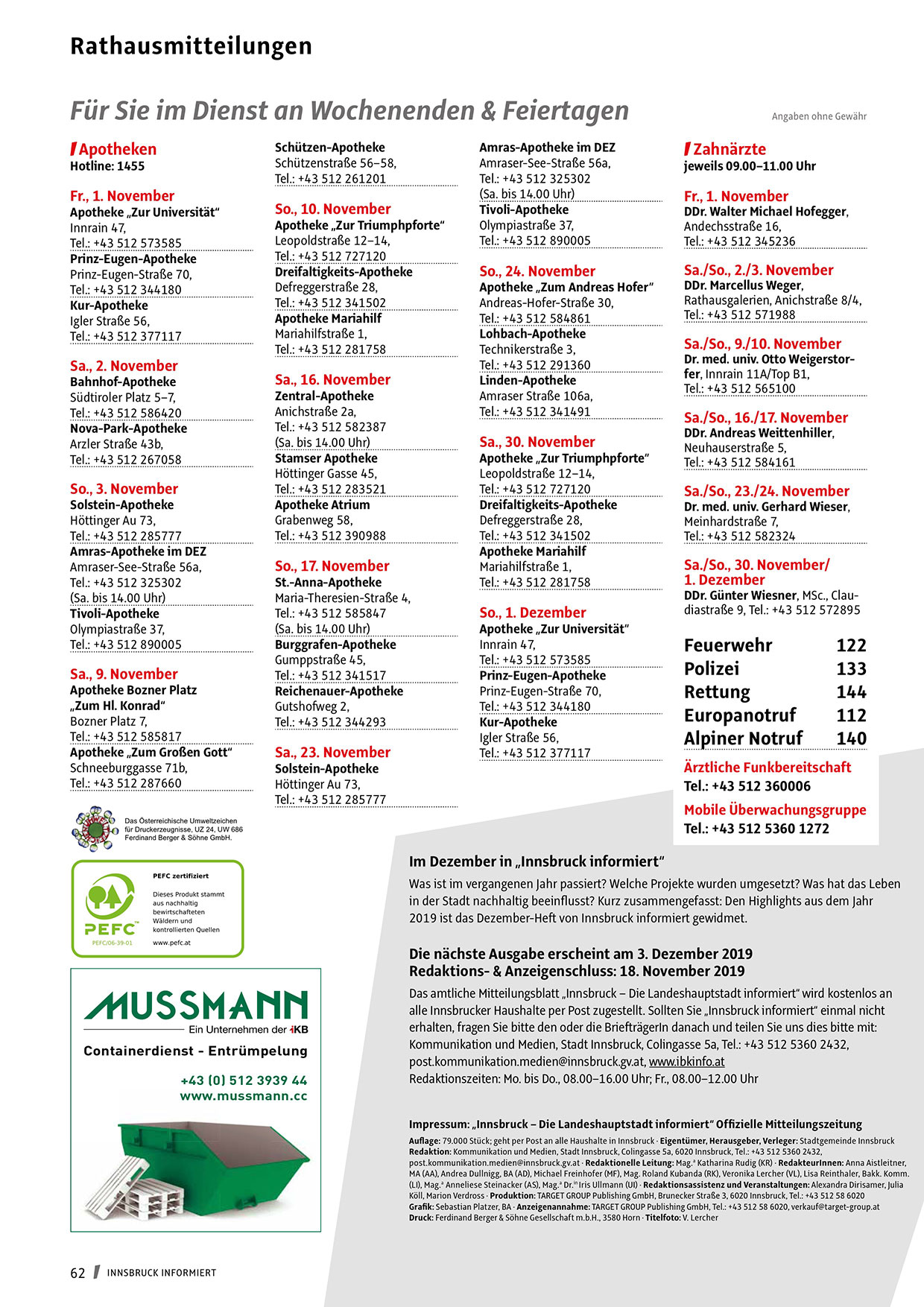 Impressum: „Innsbruck – Die Landeshauptstadt informiert“ Offizielle Mitteilungszeitung