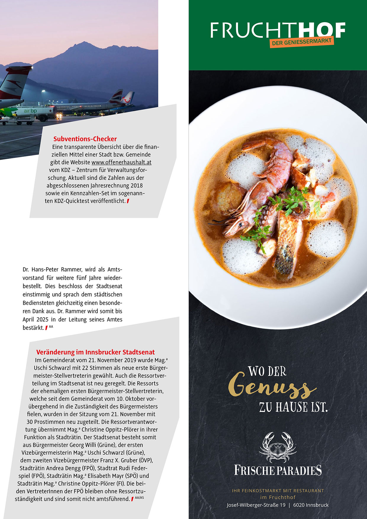 30 Prostimmen neu zugeteilt. Die Ressortverantwortung übernimmt Mag.a Christine Oppitz-Plörer in ihrer