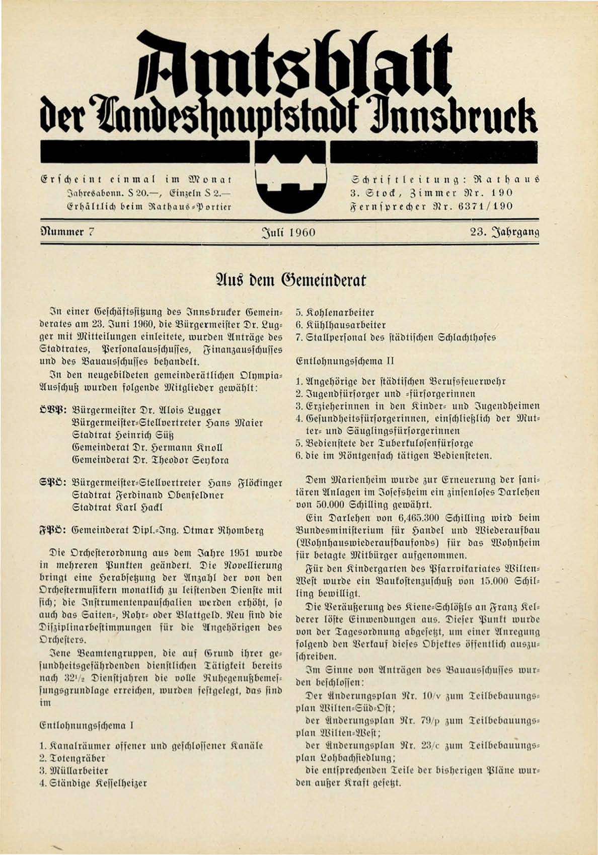 I n einer Geschäftssitzung des Innsbrucker Gemeinderates ani ^3. Juni 1!>
