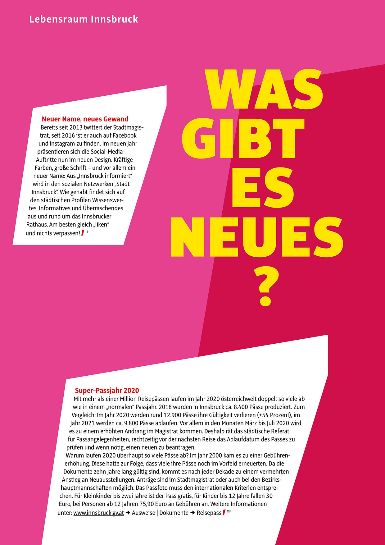 wie in einem „normalen“ Passjahr. 2018 wurden in Innsbruck ca. 8.400 Pässe produziert. Zum