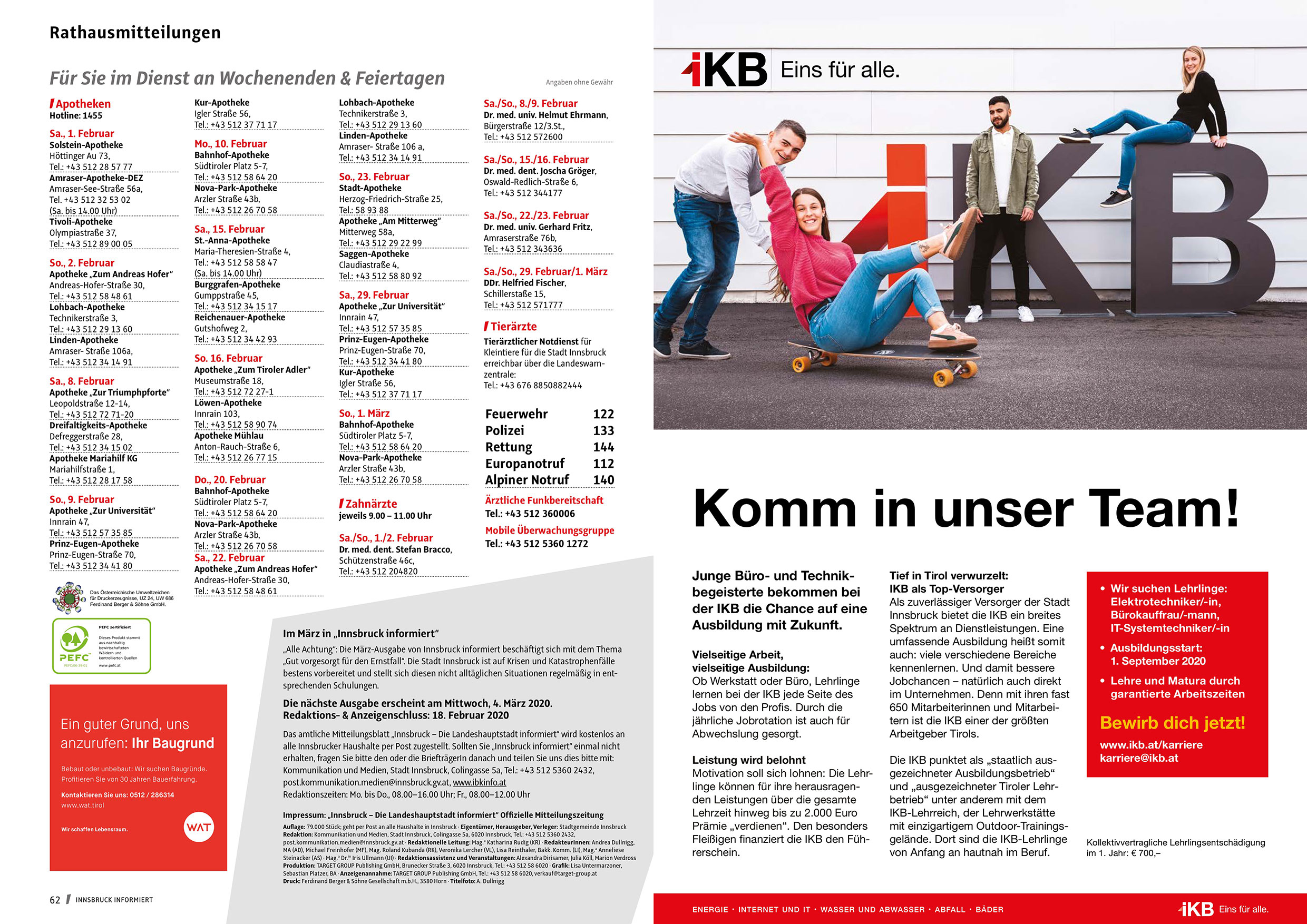 Impressum: „Innsbruck – Die Landeshauptstadt informiert“ Offizielle Mitteilungszeitung