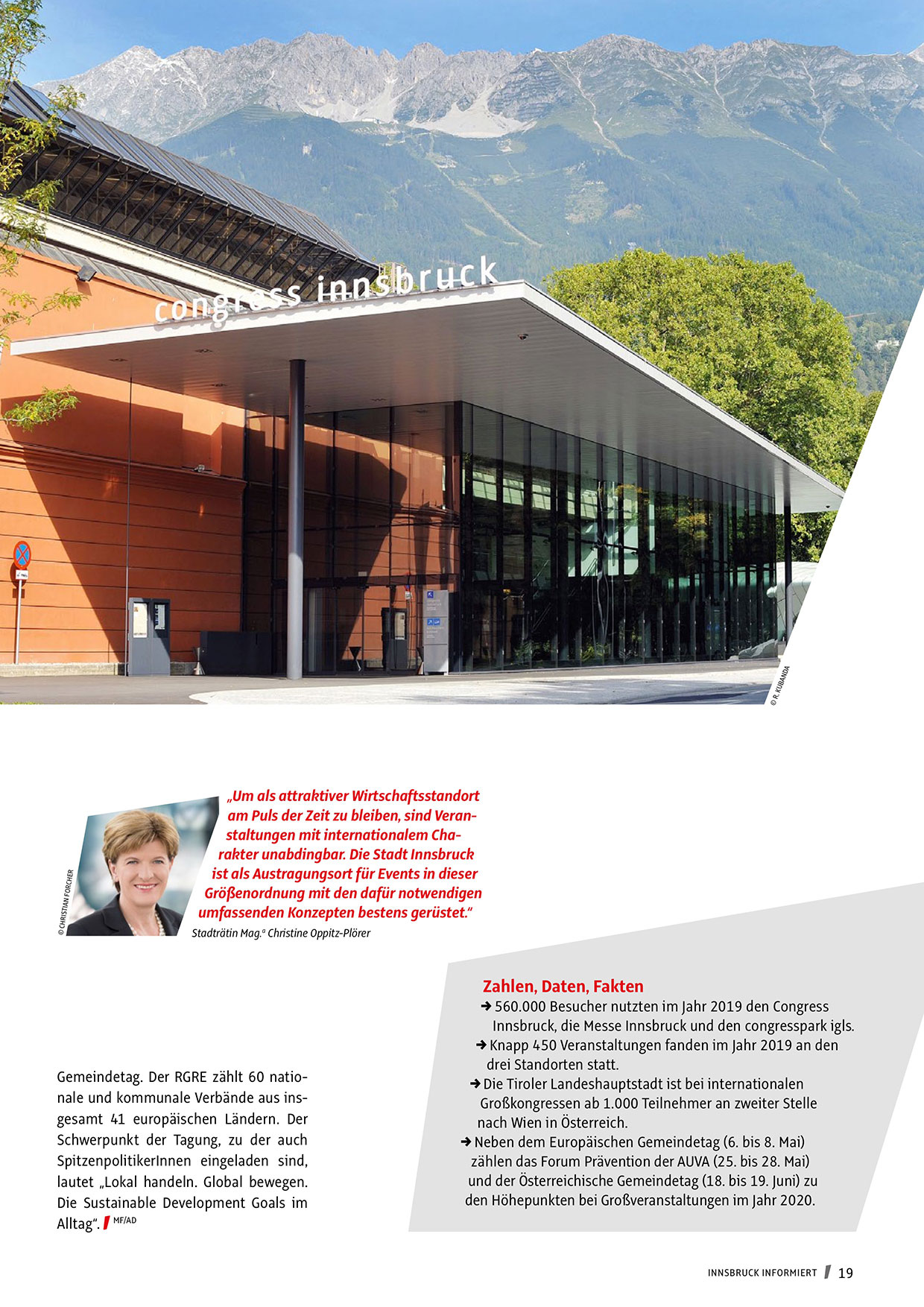 am Puls der Zeit zu bleiben, sind Veranstaltungen mit internationalem Charakter unabdingbar. Die Stadt Innsbruck