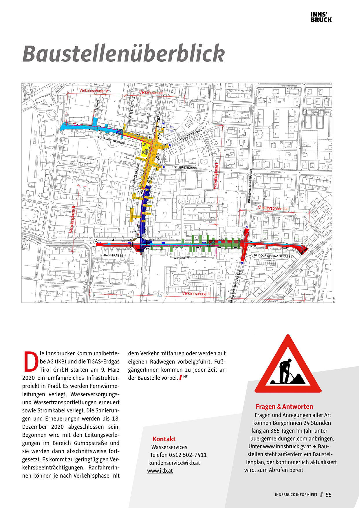 Unter www.innsbruck.gv.at , Baustellen steht außerdem ein Baustellenplan, der kontinuierlich aktualisiert