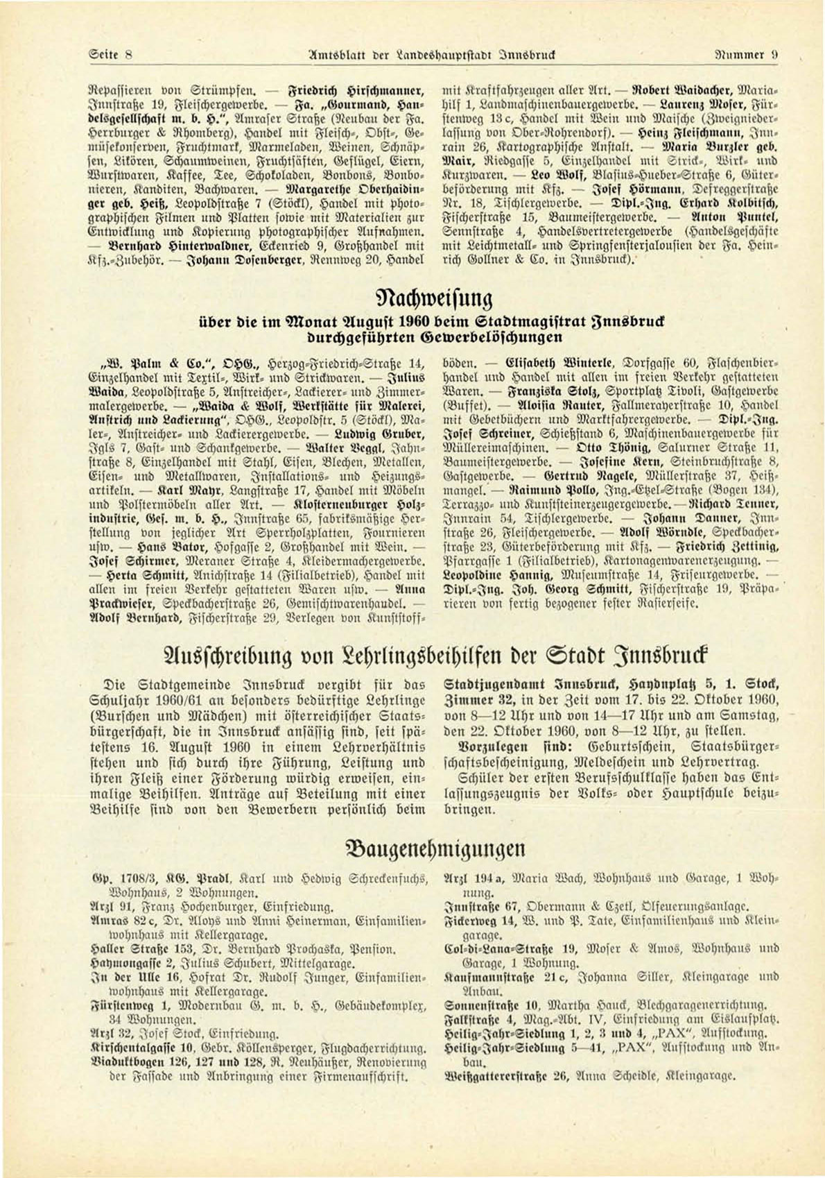 über die im Monat August 1960 beim Stadtmagistrat Innsbruck