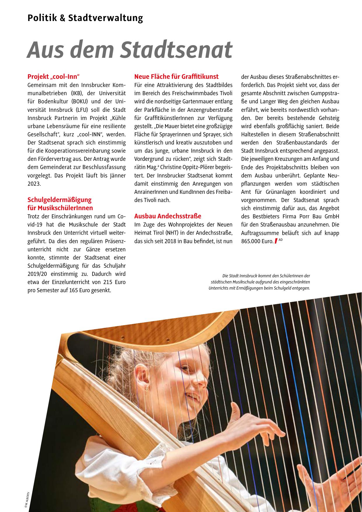 Vordergrund zu rücken“, zeigt sich Stadträtin Mag.a Christine Oppitz-Plörer begeistert. Der Innsbrucker Stadtsenat kommt