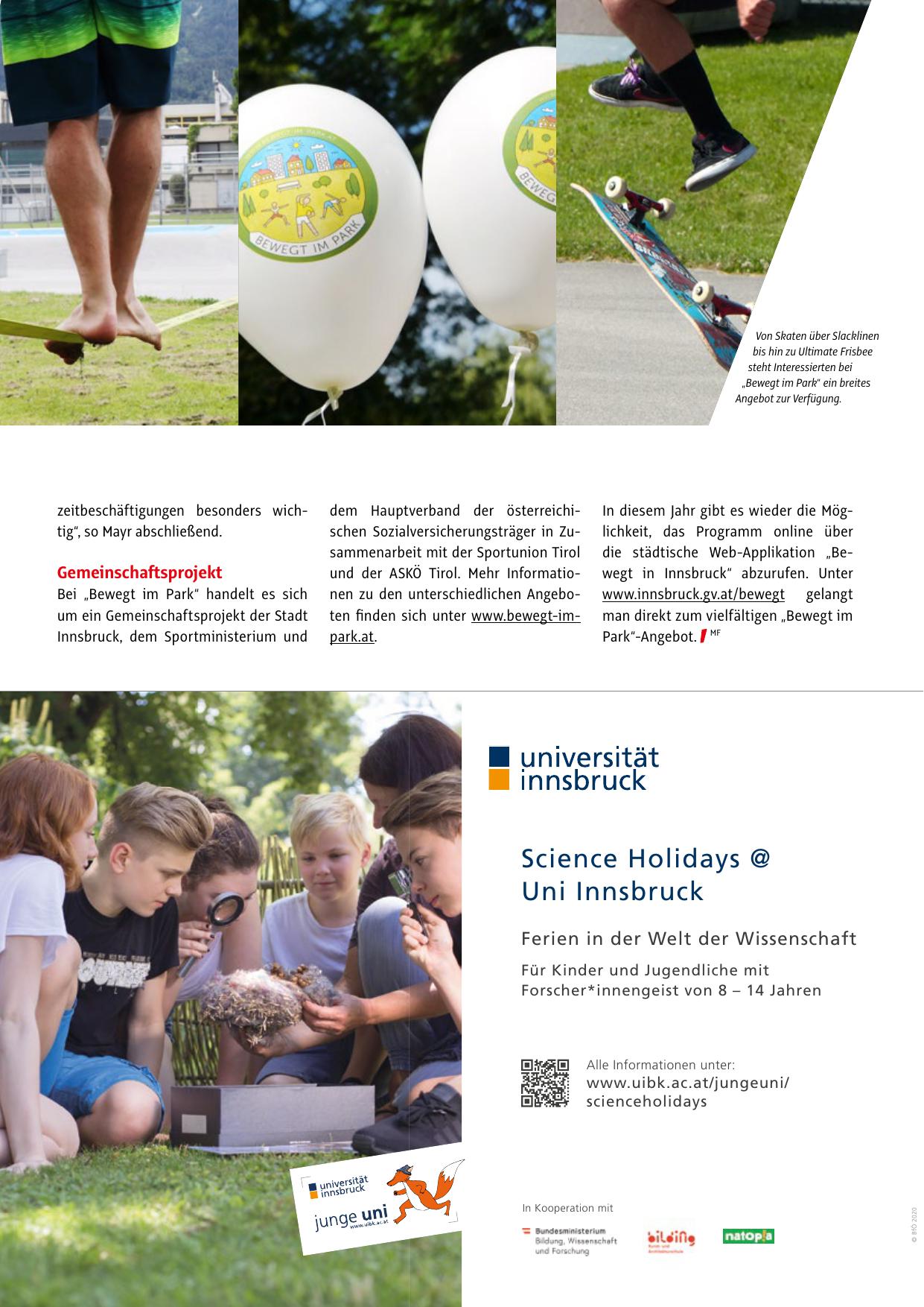 und der ASKÖ Tirol. Mehr Informationen zu den unterschiedlichen Angeboten finden sich unter www.bewegt-impark.at.