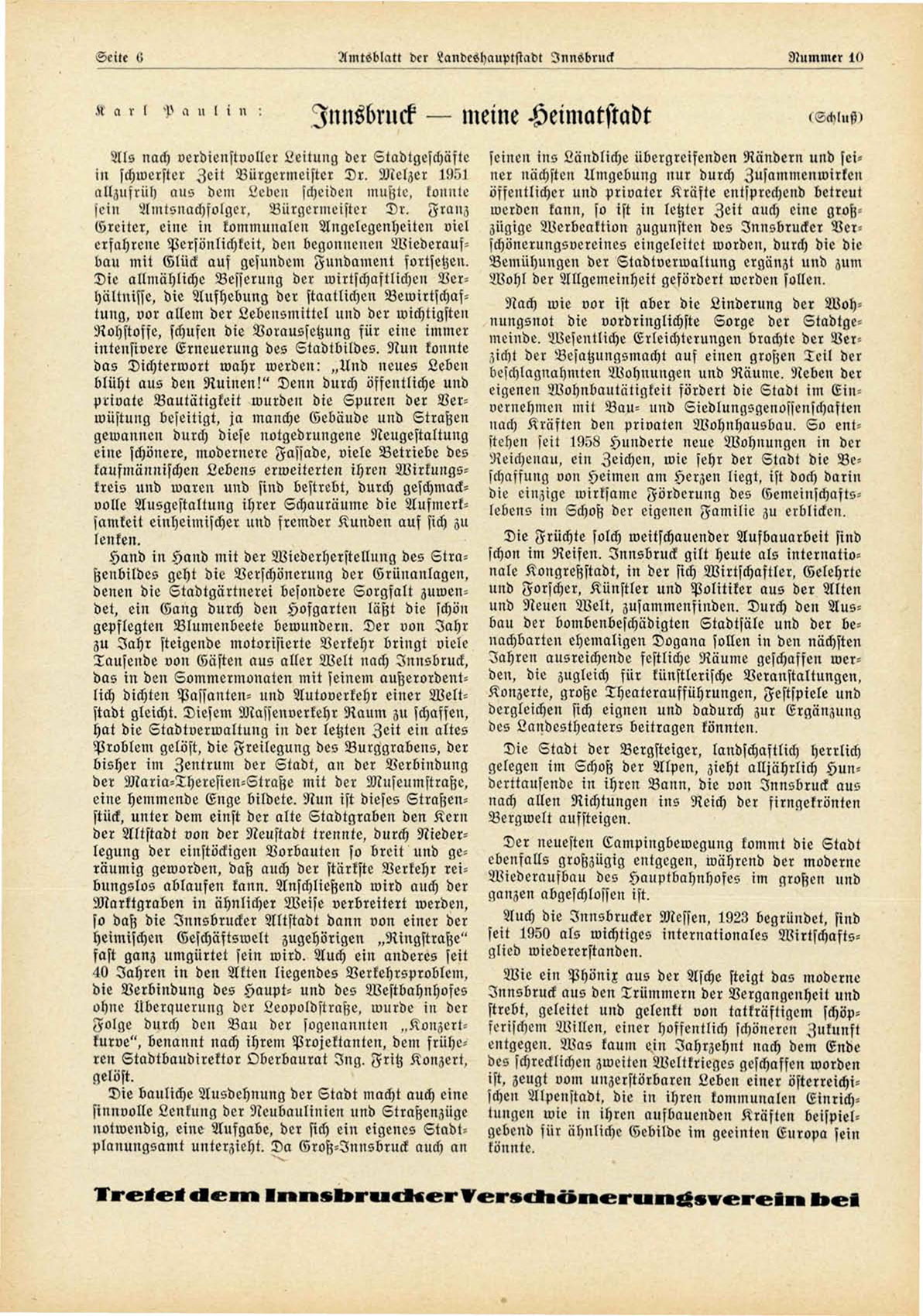 ist. zeugt vom unzerstörbaren Leben einer österreichiDie bauliche Ausdehnung der Stadt macht auch eine schen Alpenstadt. dio in ihren kommunalen Einrichsinnvolle Lenkung der Neubaulinien und Straßenzüge tungen wie in ihren ausbauenden Kräften beispielgebend für ähnliche Gebilde im geeinten Enropa sein