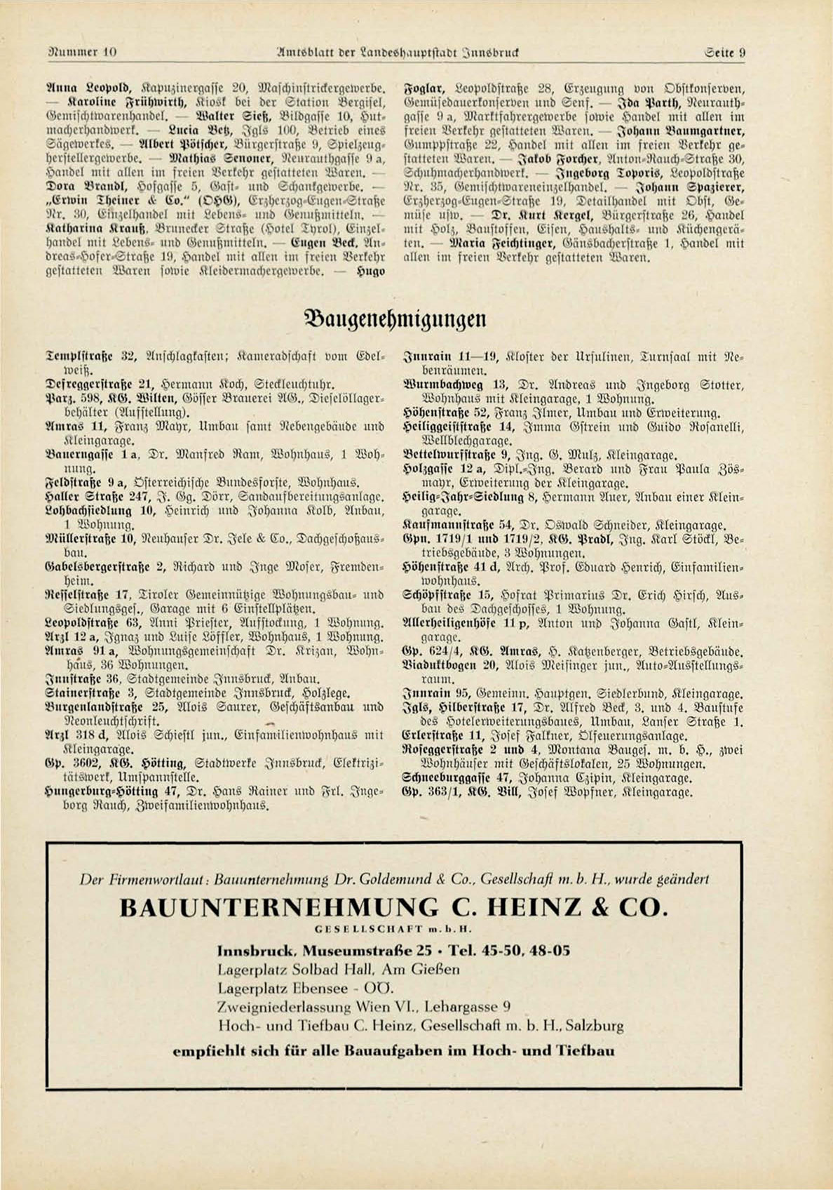Dora Brandt, Hofgasse 5>, Gast, und Schanlgewerbe. „ E r w i n !l,eil,cr << (5o." (OHG), Erzherzog Eugen Strasse