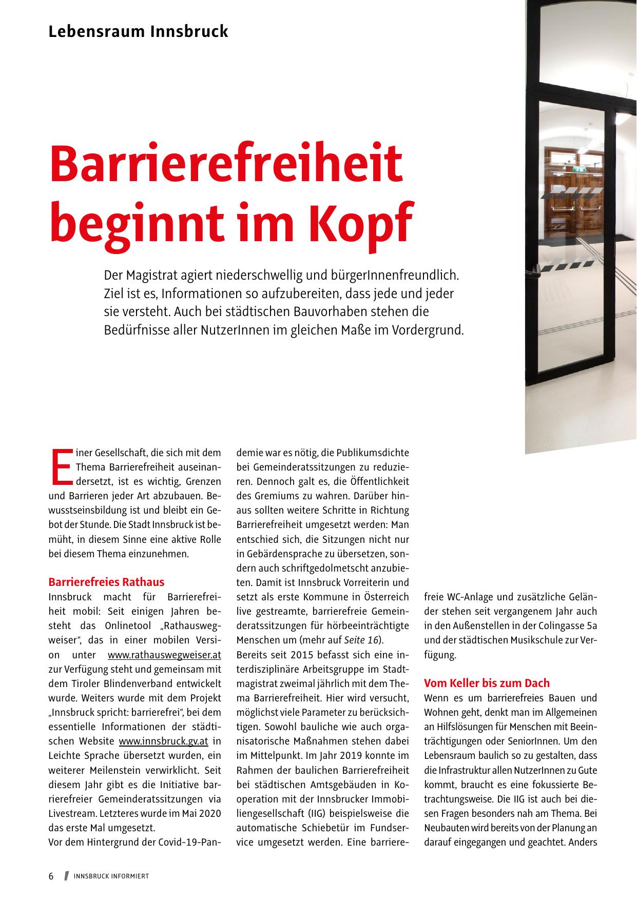 und Barrieren jeder Art abzubauen. Bewusstseinsbildung ist und bleibt ein Gebot der Stunde. Die Stadt Innsbruck ist bemüht, in diesem Sinne eine aktive Rolle