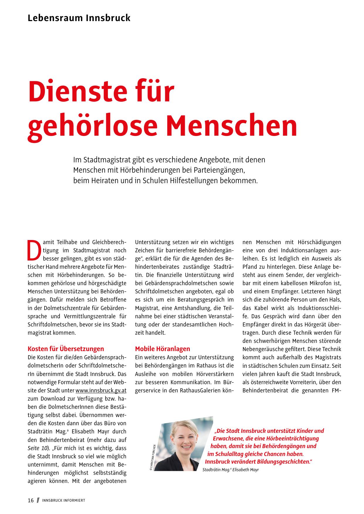 Die Kosten für die/den GebärdensprachdolmetscherIn oder SchriftdolmetscherIn übernimmt die Stadt Innsbruck. Das